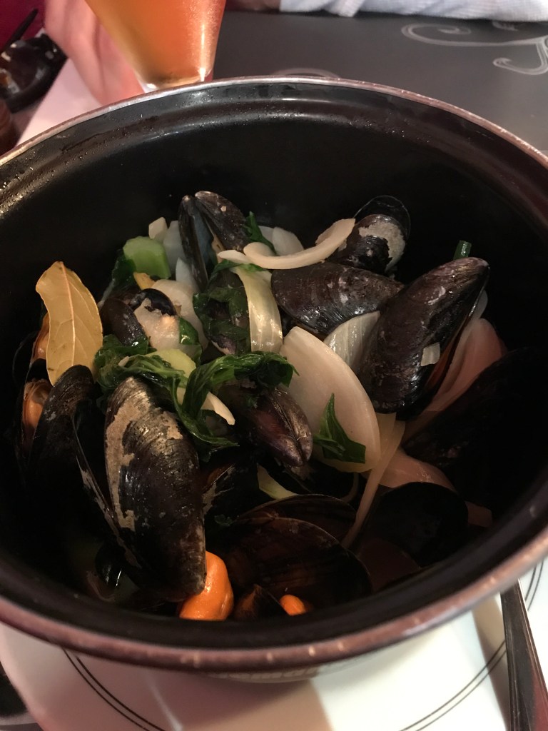 Moules et frites or Mussels with fries. (We’ll talk about the fries in a moment, they are also an amazing food to try in Belgium.) Mussels are on almost every menu. They are usually around 20 euros, sometimes more if you want them in a particular style. I was lucky and ordered from a lunch menu and got half a pot. It was more than enough for me to eat. You can see how many mussels are in a half pot above and mine were served in a white wine sauce. I could have drank it like a soup at the end. Honestly, I did drink some from my spoon. Jef ate most of my fries, which I can’t eat a lot of anyway, but they are really good here. There is a nice balance of potato and crispiness. There are long lines at the frites places and they serve them with an extensive list of sauces. The most popular is mayonnaise, but there were also interesting ones that we didn’t understand such as Americaine and curry ketchup.