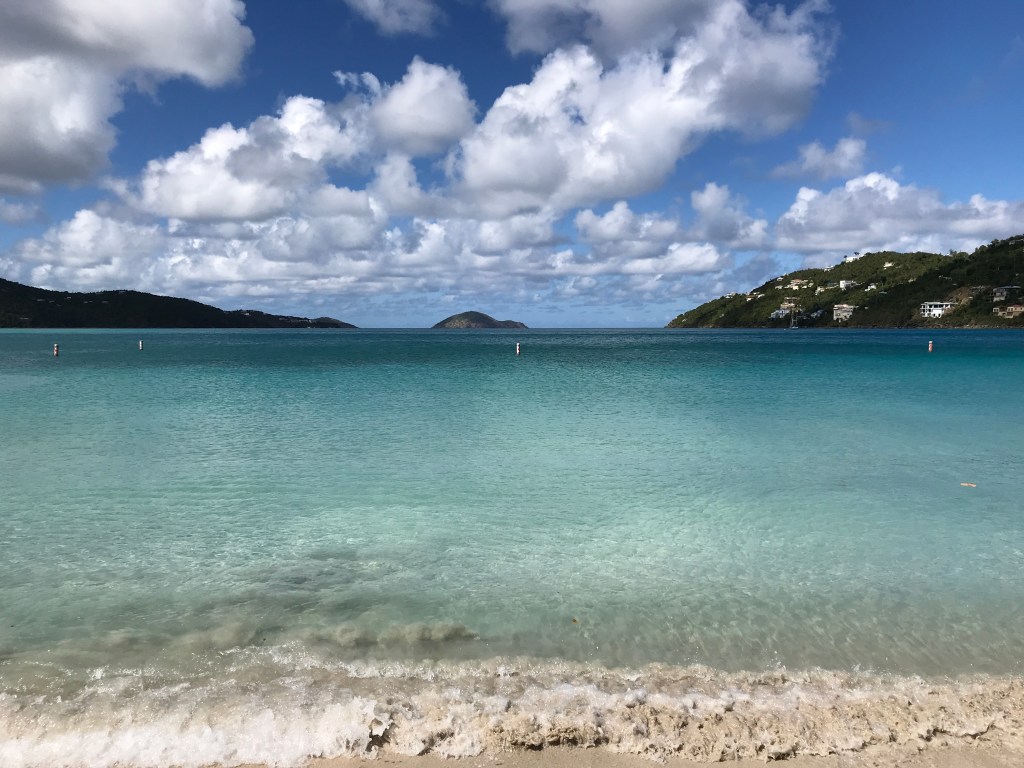 After shopping, we headed to Magen’s Bay, which is generally THE beach to hit when you come to St. Thomas. It is where most of the tourists from cruises head for the day. We checked ahead of time to make sure there were no boats in the harbor that day so I could experience this beach. You have to pay for the beach and parking. It’s $5 a person and $2 for parking. It boasts lifeguards, several bathrooms with changing areas, a bar, and a place to rent water sports equipment.