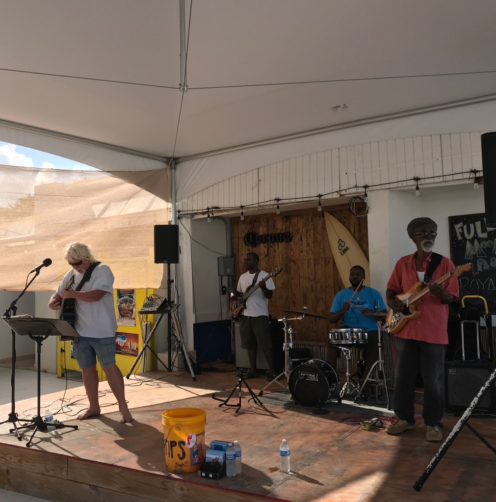 We spent our final day enjoying a couple of excellent bands (after a couple of hours enjoying the beach of course). The first band was Barefoot Davis on Sapphire Beach. There was a huge crowd on the beach due to the massive cruise ships in port yesterday. Barefoot Davis played mostly cover songs, but with his own twist, often changing words to reflect the atmosphere.