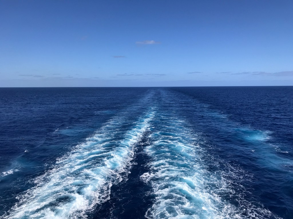 The cabins here look very small in pictures and square footage, but I think they have ample space. We are not often in the cabin for long periods of time besides sleeping. I would have liked a balcony, just to be able to sit on it and watch the ocean, but since I don’t have one it has afforded me that time to go look for somewhere similar on board. My favorite area is on deck 8. It is above the life boats so you have a nice view of the water. It is the deck with restaurants that have tables outside, but during the day no one is there, so you can sit at the tables and relax, play cards, read, or type on your computer. There are also a limited amount of comfy chairs and loungers and a bar on each side. At the back of the boat on deck 8, you have the best view (the back of the boat has always been a favorite spot of mine), but standing room only and no one is ever there.