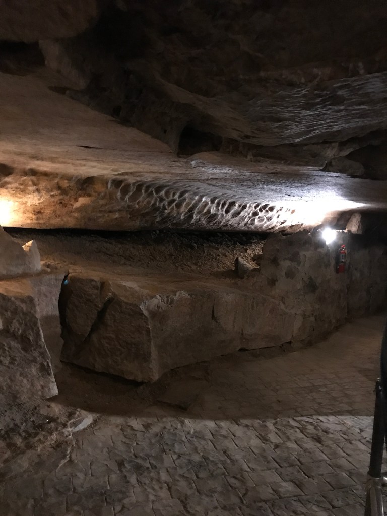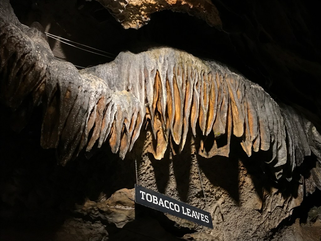 You have to walk .75 miles in order to get to the falls. On the way, you get to see all kinds of rock formations such as stalagmites, stalactites, columns, and flows. Of course they have named a lot of these formations because they look like every day items like bacon. As you walk, you can see where the original trail when they first explored the cave. It was mostly a crawl space and did not look like a good time.