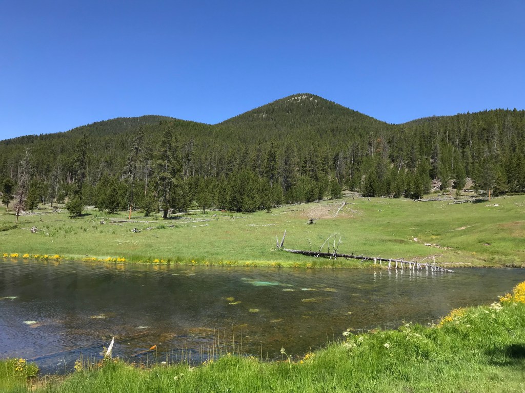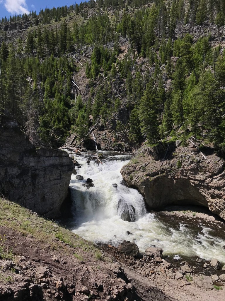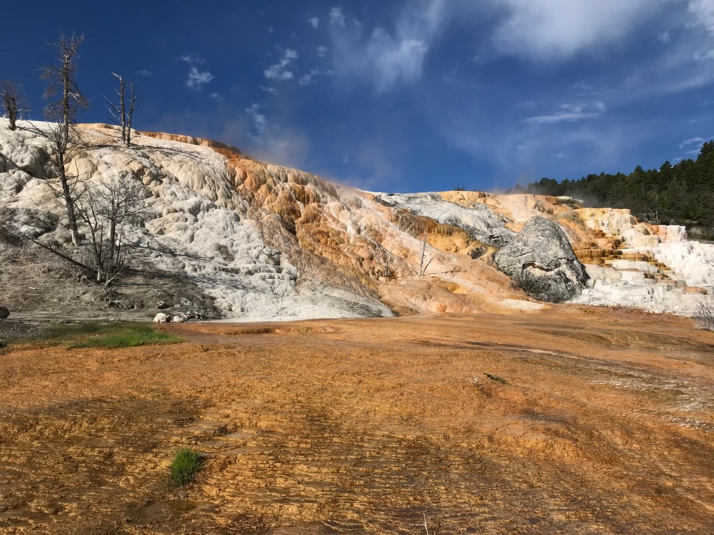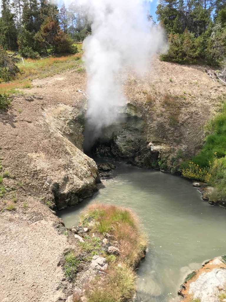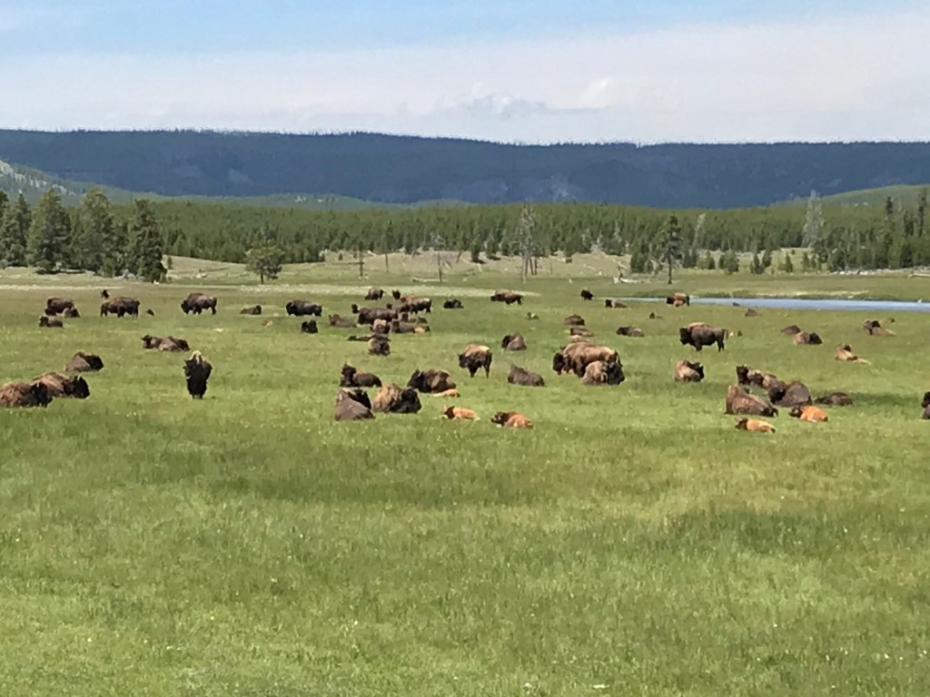 We got tired of driving and getting stuck in traffic at the places you could visit. We did stop at one last area, Mud Volcano. The bison hanging around right before the parking area drew us in. We walked the small loop around and saw the opening of the springs, the mud volcano, and a mud cauldron. As you are walking you can hear the glug glug of the mud bubbles popping. The smell was also a bit different from the other springs. You could definitely smell the mud along with a bit of sulphur. I’m excited for tomorrow and more discoveries.