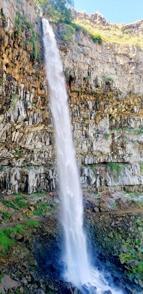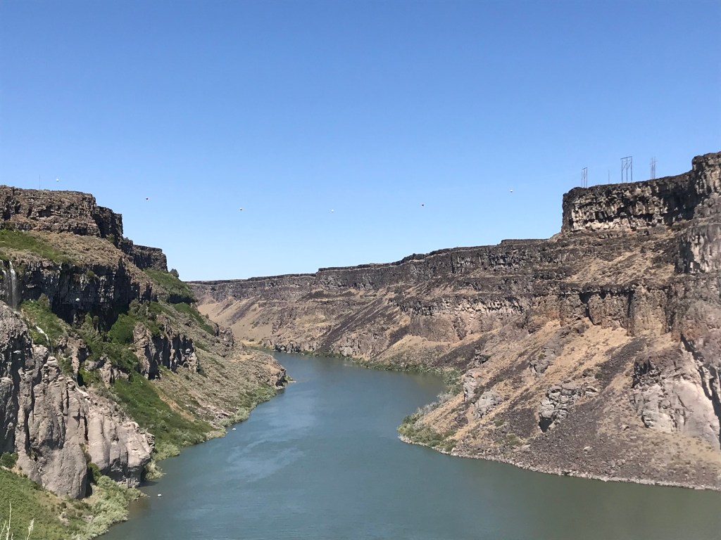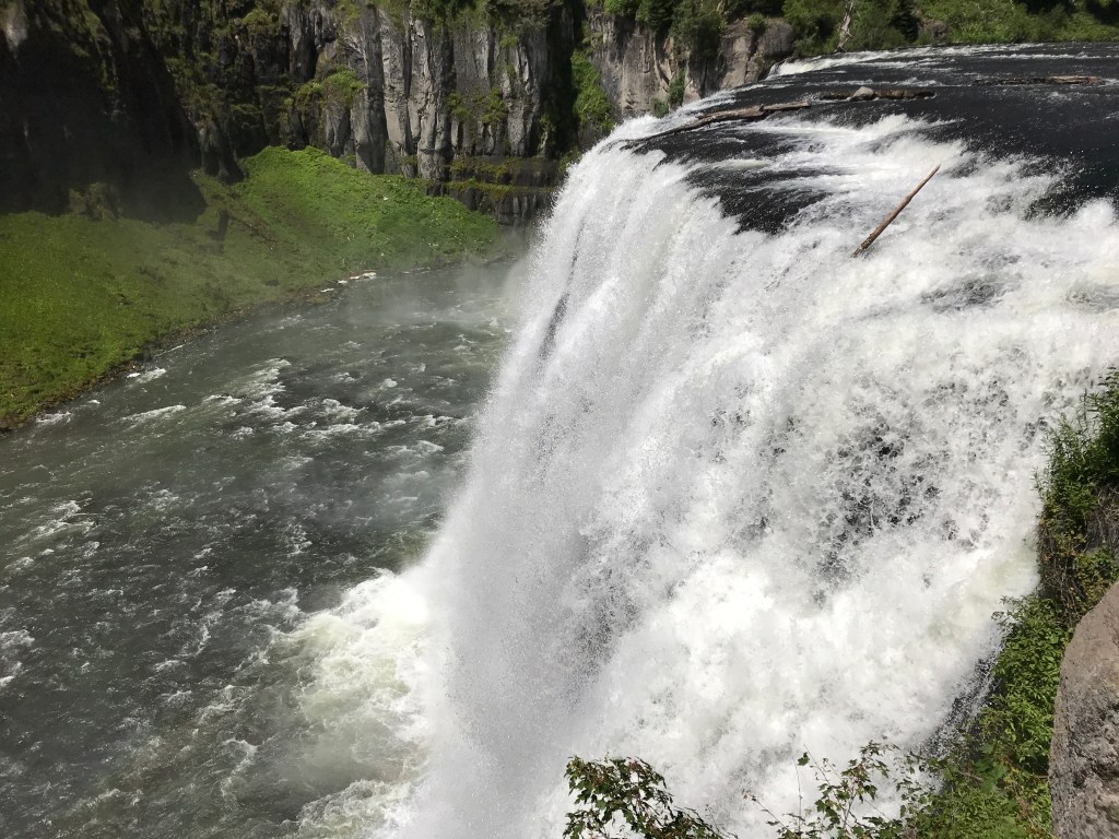 On the way back to the cabin we rented, we stopped at the Potato Museum. We didn’t actually tour the museum, but we had a baked potato at the cafe and it was perfect! There are so few people that cook potatoes well, of course we found the best places here in Idaho. Our cabin was right on the creek. We enjoyed sitting on the porch and watching the beavers and ducks swim back and forth. The next morning we found another waterfall right outside Twin Falls. We were driving down into the canyon to take a picture of the bridge and on the way back found the falls. Jef took a beautiful picture.