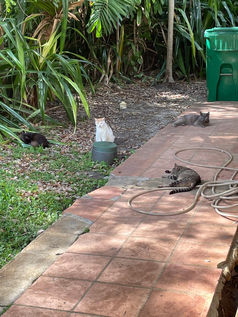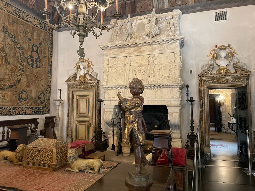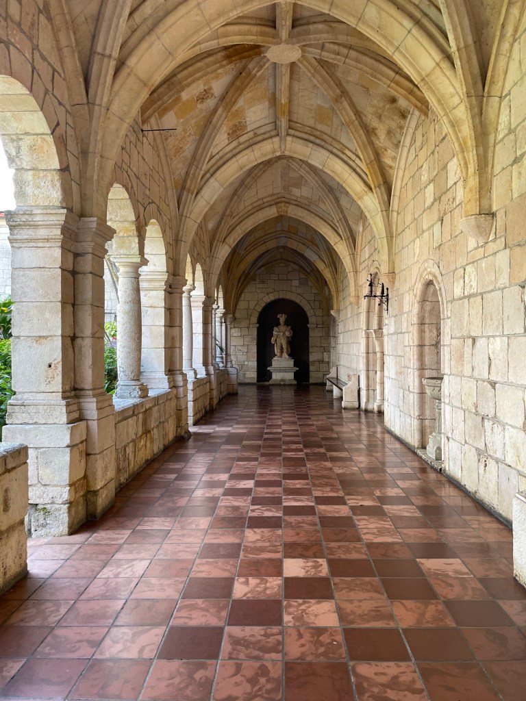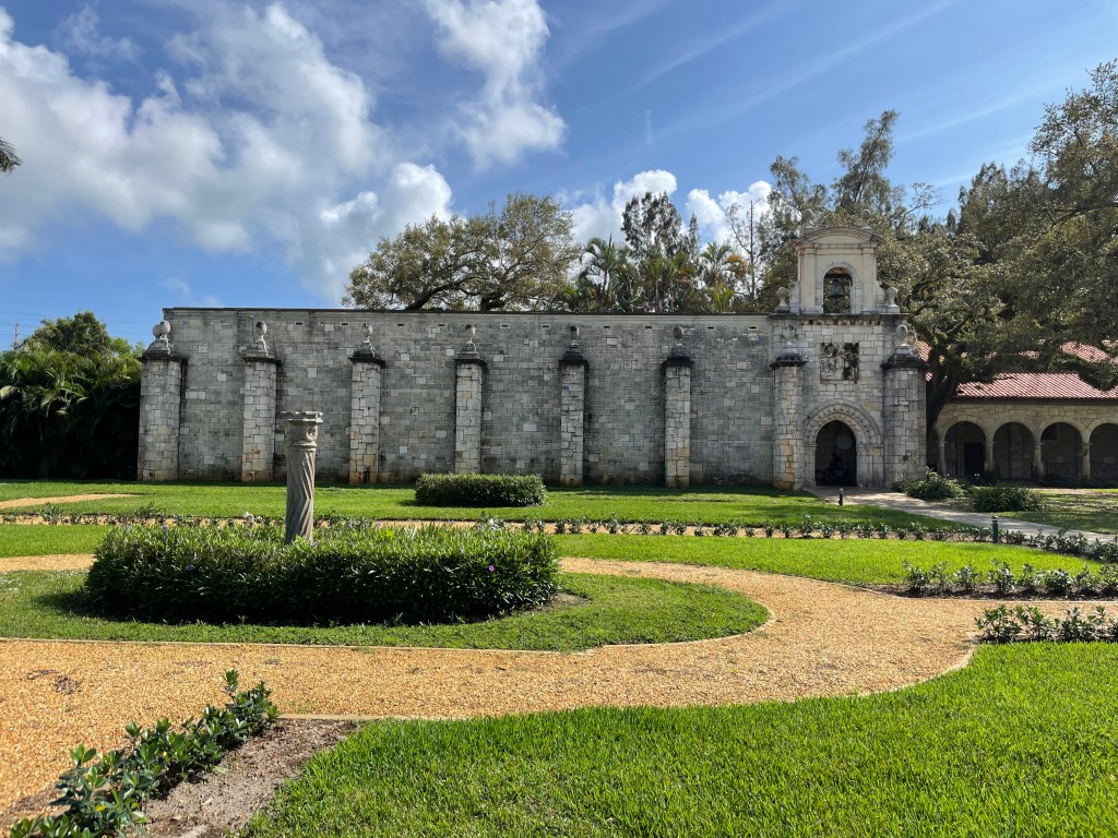 After touring the house and gardens, we went to see a Spanish monastery. This was built in the 1200s in Spain. They brought it over to the U.S. in pieces and rebuilt it in Miami. It reminded us of being in Spain, which was lovely. There were so many girls dressed up for their quinceañera, posing for photos while we were there. One girl looked like Cinderella and there was a boy with her dressed as a prince. I had never seen that before. There were also a good number of cats roaming around and soaking up the sun. Inside the building, they had a number of artifacts from the 1200s that belonged to the monastery, such as candlesticks, a giant hymnal, helmets, and even an ancient hearse.