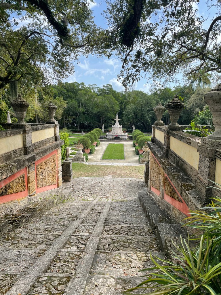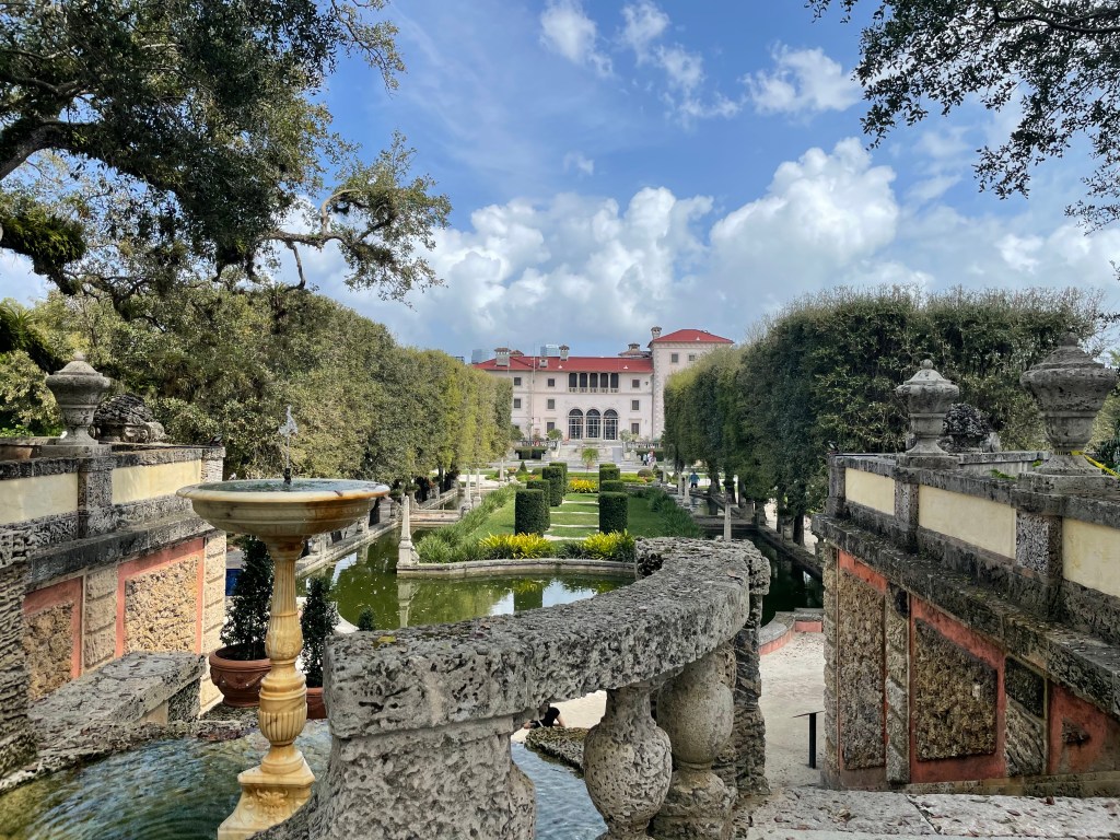 Today we started at Vizcaya Museum and Gardens. Vizcaya was built by the Deerings. The gardens are magnificent. They reminded me of gardens I have seen in Europe.