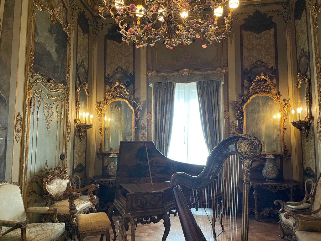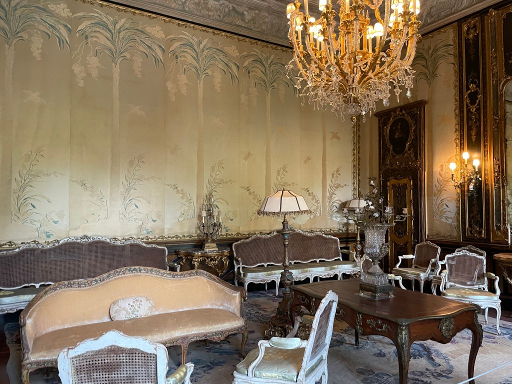 The inside of the house was neat to see. The middle of it was once all open to the outside in the true Spanish style. They have now put giant windows where it was once open air. Most of the floors are marble and the doorways are like tiny hallways into the next room. The rooms themselves are fashioned after different eras and countries. They likened the living room to a French chalet. The music room was designed for the baroque time period. Of course we were walking behind an older couple who thought it was a good idea to open all the cabinets in the pantry area. I still can’t believe the audacity of people.