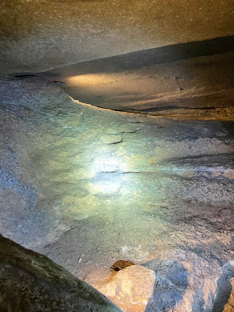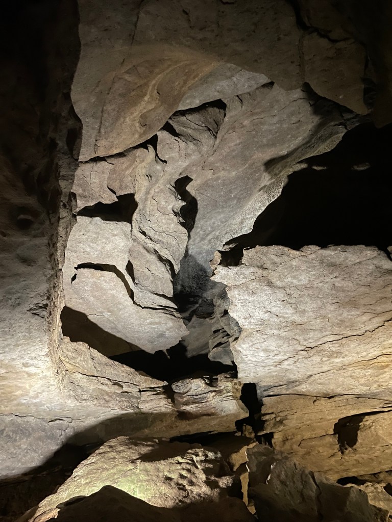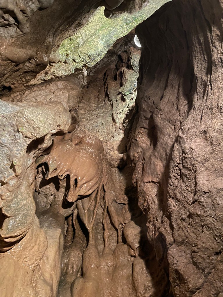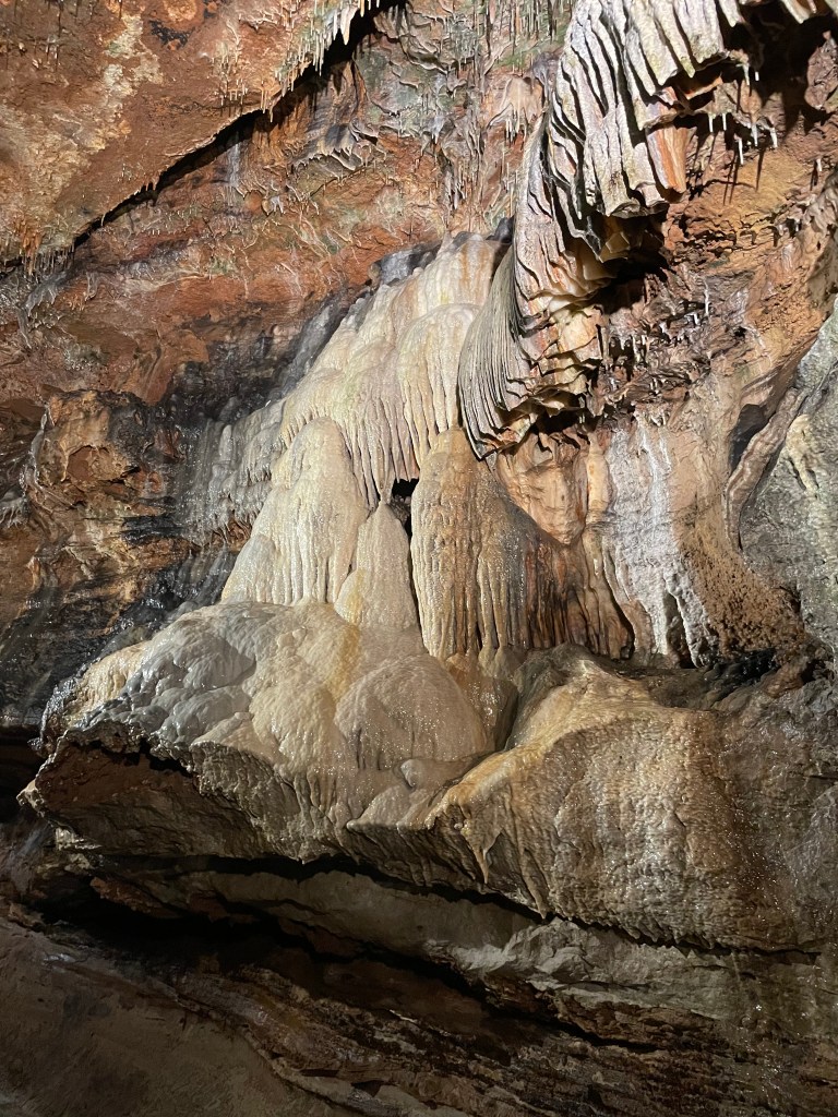 This cave was different from the other in that it was all smooth walking with no steps. There was one section that you had to duck, but it was otherwise very open and easy to walk. He did warn us that there were bats. They do not usually stay in the cave this late in the season, but the weather has been odd this year and they stayed longer. There are times during the year in which thousands of bats will fly through the cave. Lance estimated that there were at least 100,000 bats there in the winter. We saw quite a few flying around and some were right in front of us. It didn’t bother me, but if bats make you nervous, this is not the cave for you.