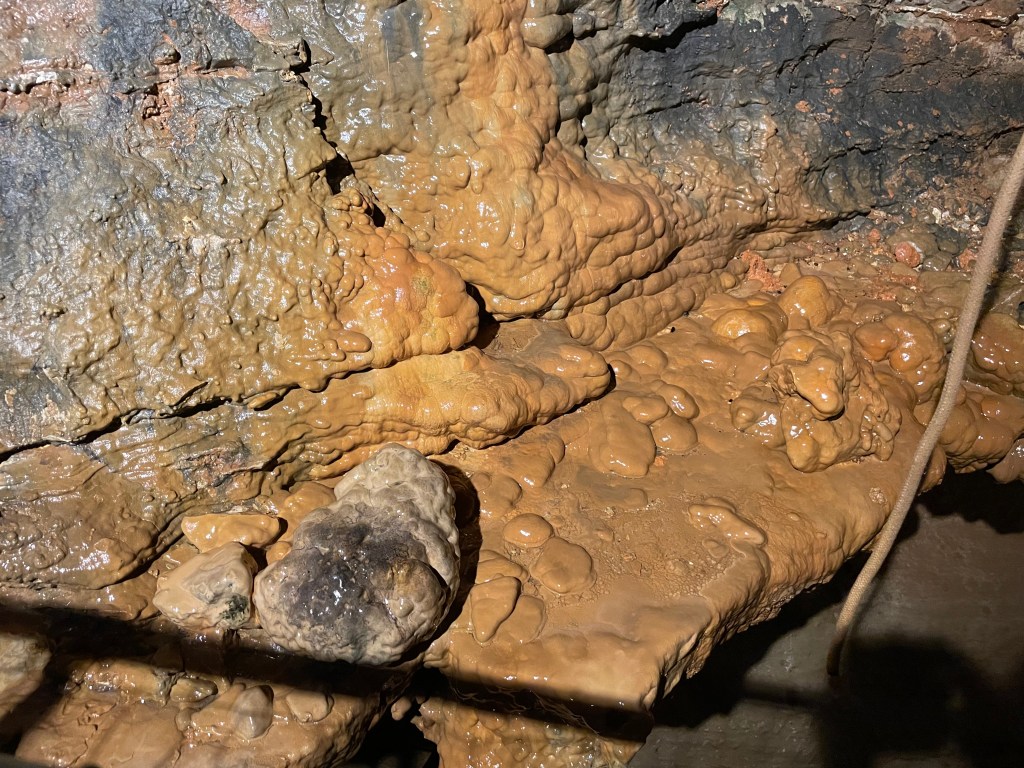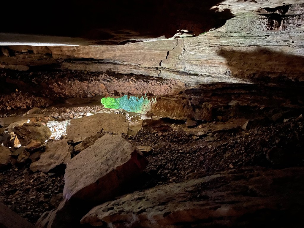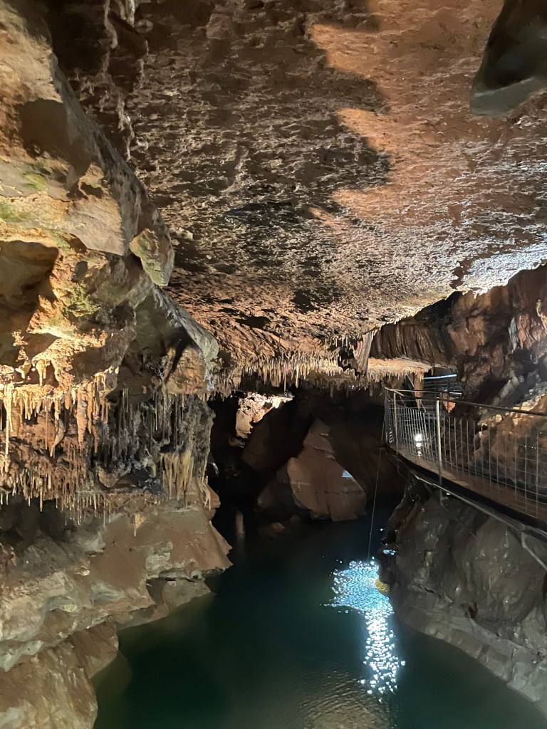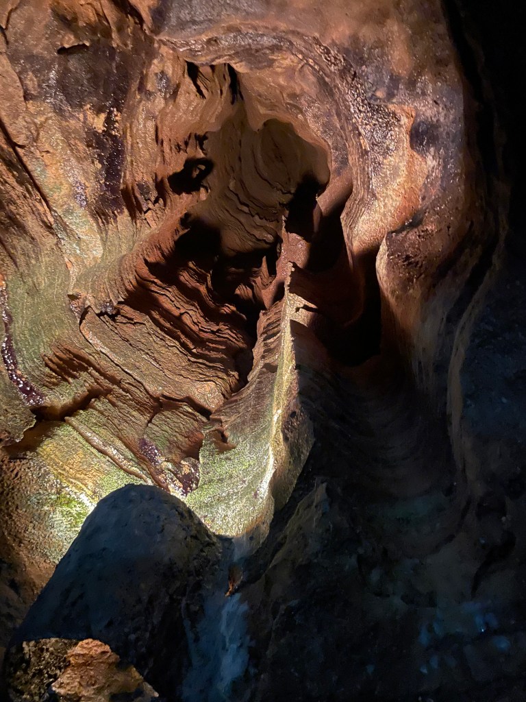 This cave was different from the other in that it was all smooth walking with no steps. There was one section that you had to duck, but it was otherwise very open and easy to walk. He did warn us that there were bats. They do not usually stay in the cave this late in the season, but the weather has been odd this year and they stayed longer. There are times during the year in which thousands of bats will fly through the cave. Lance estimated that there were at least 100,000 bats there in the winter. We saw quite a few flying around and some were right in front of us. It didn’t bother me, but if bats make you nervous, this is not the cave for you.