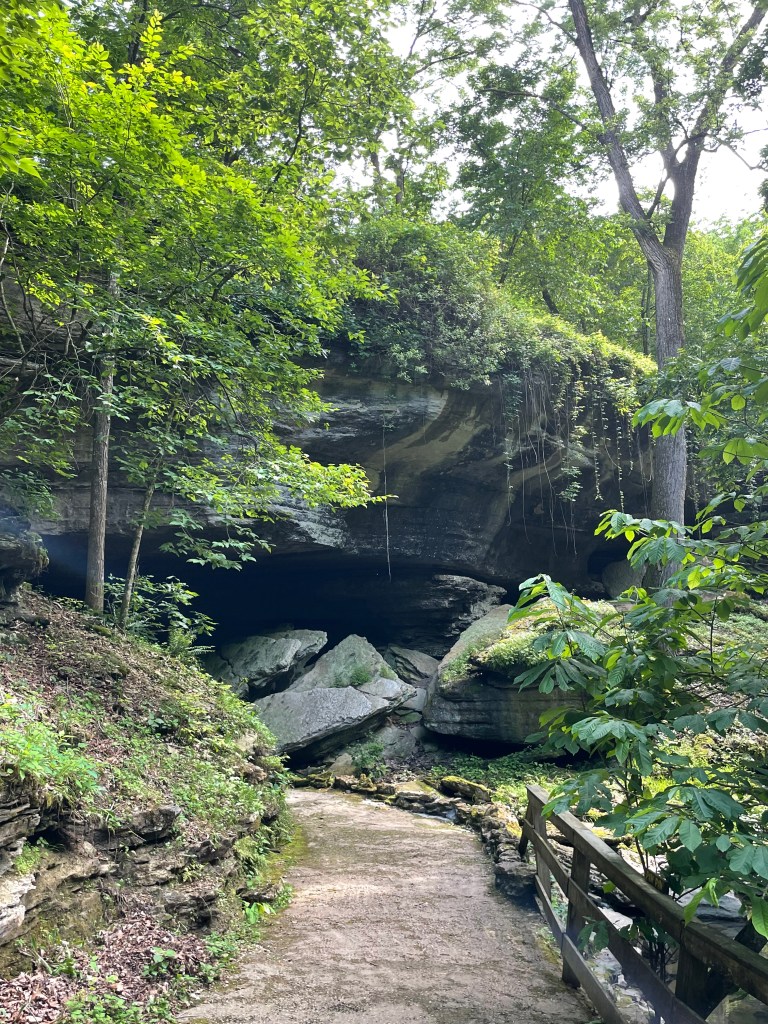 The tour only takes you about a half a mile into the cave, but it continues for another four miles. You may also see some colorful salamanders in the cave, but we were not so lucky. If you want to sign up for a wild cave tour it will take you two miles into the cave, but in tight spots. The picture below is where the wild cave tour would begin. However, they would not use these steps. These were created by people who explored the cave before it was widened. This is incredible to me since they would be in total darkness, unless they had a candle.