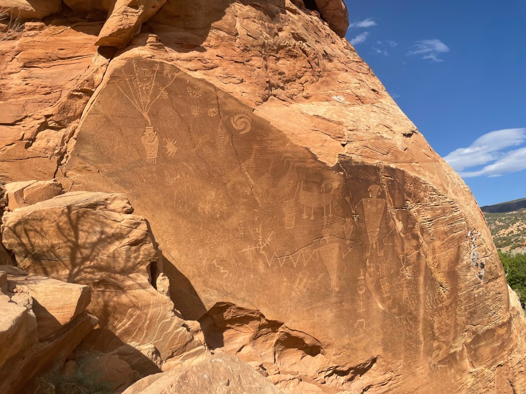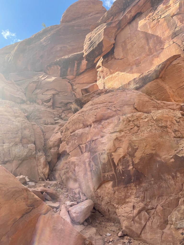 There are also petroglyphs on many of the rock faces as you drive. The Fremont people put these on the rocks over 1, 000 years ago. Sometimes you can see the petroglyphs clearly from the road, but others you need to hike up next to them to tell what they were trying to portray.