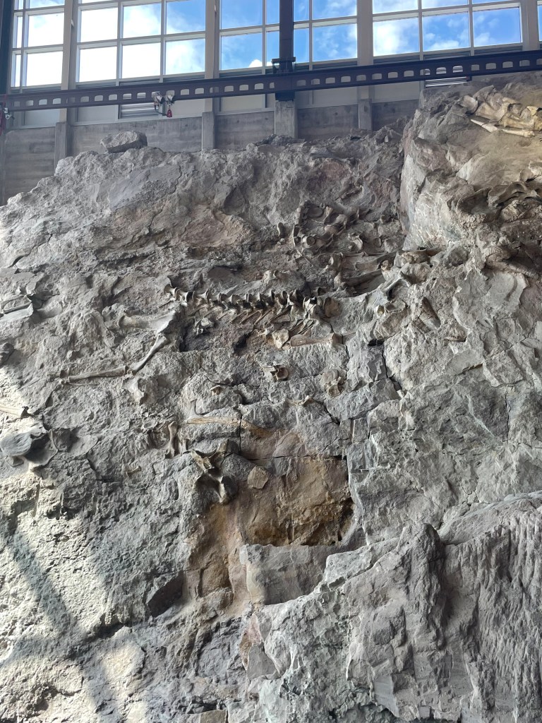 We thought that the visitor center in Utah was closing at 5pm, so we rushed over to it and found it was open until 6. The visitor center has some exhibits, but you want to hop on the tram over to the big Quarry Exhibition Hall (you can drive or walk there if you want). The Quarry is an actual rock wall filled with dinosaur fossils. They built a building around it, actually they had to build TWO buildings when the first one developed a crack in it. There are over 1500 fossils and they are exactly where they were left 149 million years ago in an old stream. It’s unreal. There are some explanations on what bones are which animal and some history on the discovery. You can even touch an actual fossil on the wall. It feels like a rock.