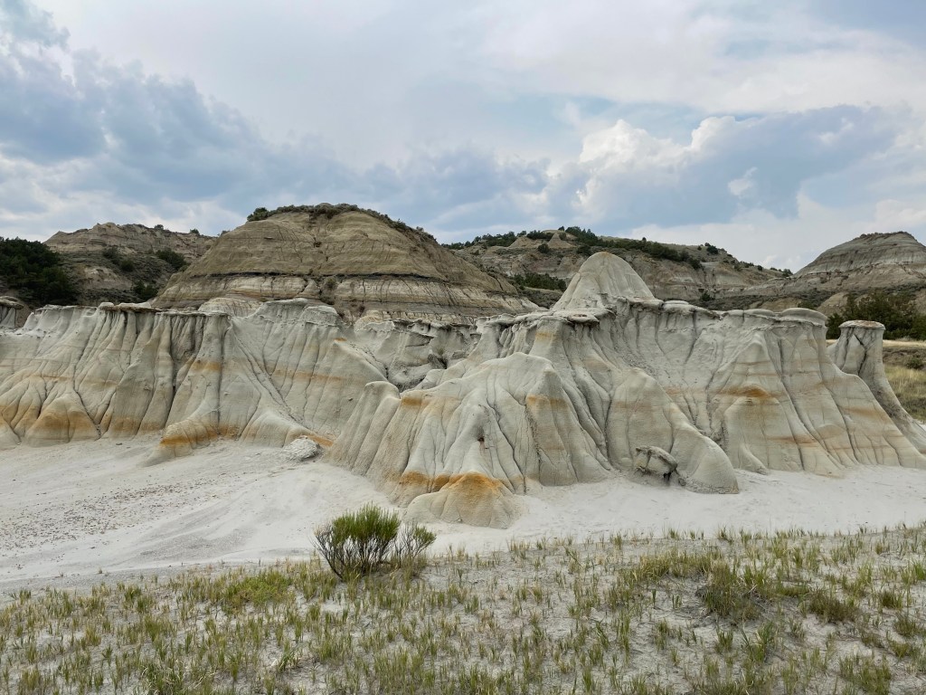 Theodore Roosevelt National Park is located just across the Montana border in North Dakota. The park was not very busy, which was wonderful since we decided to drive the loop and just stop for pictures. (It was over 100 degrees with a brisk wind, it was like being in an oven with the fan blowing.) There is a loop road that you can drive, but part of the loop was closed, so we drove about 24 miles and then had to turn around and drive the same road. The first thing we saw was a wild horse on the side of the road! It headed down into the ravine for a drink as we watched.