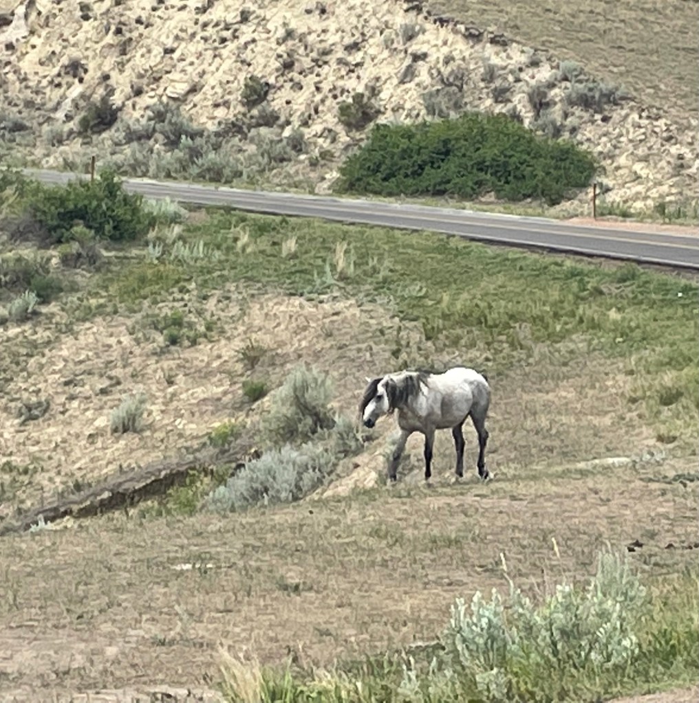 We also came upon a large herd of wild horses. A small group was huddled together a bit closer to the road, but you could see another huge group in the background. I’m always excited to see horses, but wild ones are even more special.