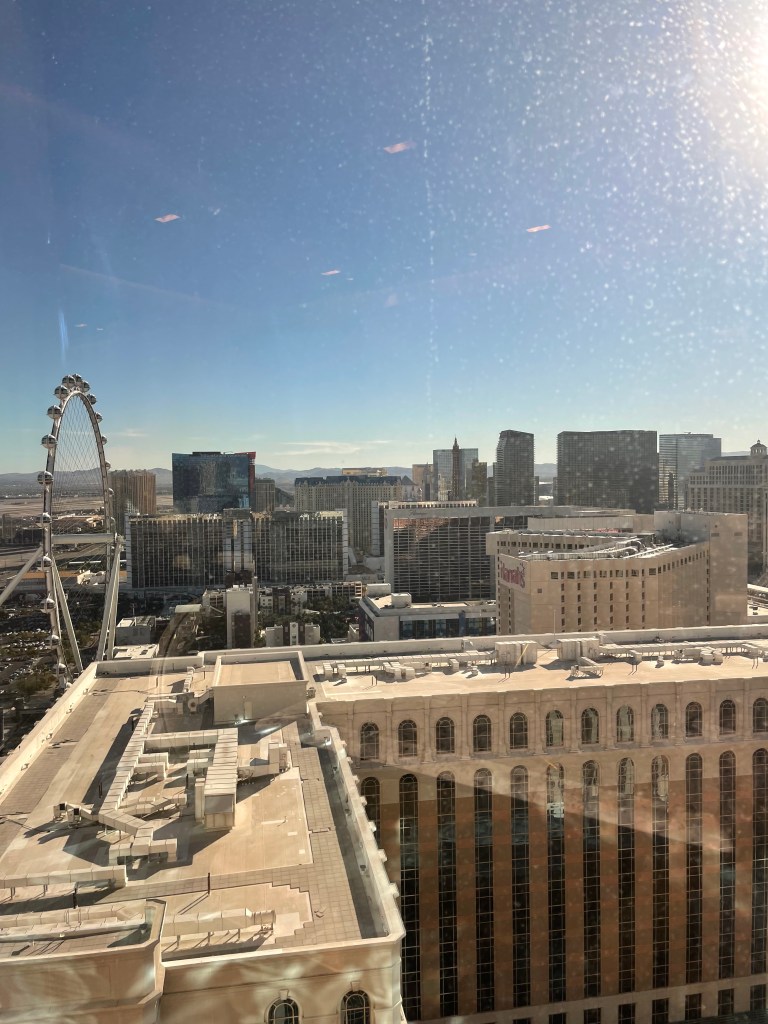 This was my third visit to Las Vegas. It was the first time that it was not the summer time. We stayed (for the second time) at the Venetian. Jef upgraded our stay to the biggest suite and use of the Prestige Club Lounge. We were able to skip all the lines at the check in area and go directly up to the lounge area. We checked in easily, but our suite was not available (it was around 2pm), so they gave us complimentary Prosecco and we sat in the lounge and enjoyed the view while we waited for our suite to be ready.