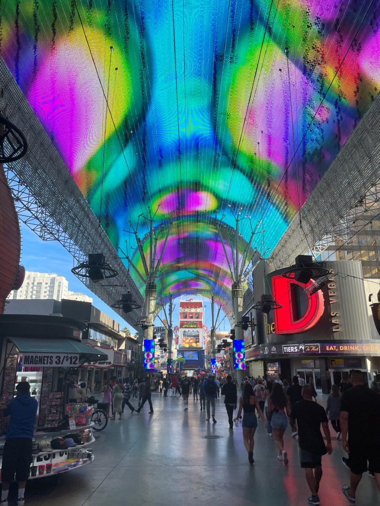 We stopped briefly at Freemont Street on the way home. We saw a lot more homeless people than we remember from previous visits. There were a lot of people selling braided palm fronds instead of street performers. It felt dirtier than we remember as well. It is just not for me.