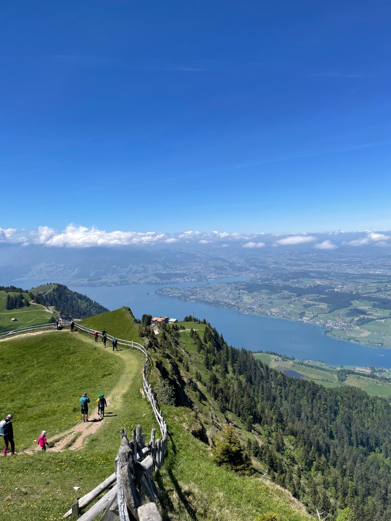 Even though the train stop says Rigi Klum (which is the top), you still have to hike a good 15 minutes or more to reach the actual top of the mountain. It is a bit chilly, so make sure to bring a jacket or sweater. The climb is also very steep, but I saw a man with two canes conquer it so unless you have health issues, it should be no problem. There is also a longer route that is less steep. You should definitely go up the top no matter how you do it.