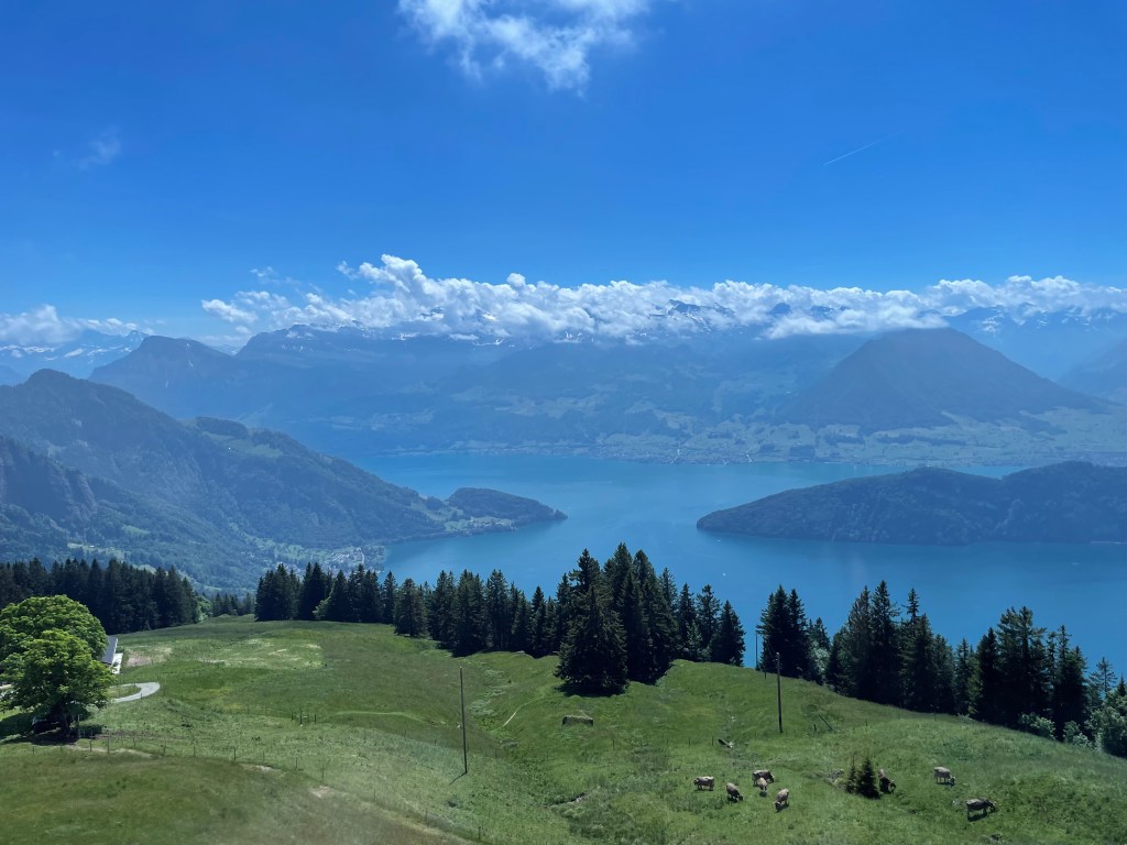 Even though we thought we visited Rigi last time we were here, it was a beautiful day to take the boat and travel up a mountain. We were not disappointed. The boat ride was calm and the mountain views were glorious. The only difference from our last visit was the ridiculous amount of people doing the same thing. I was so surprised how many people were on the boat and crowding the train.