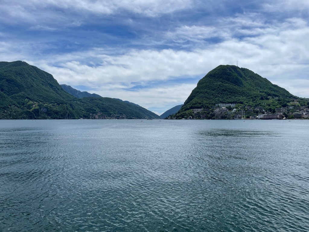 We traveled to Lugano from Lucerne on Saturday morning. The train was very full, most notably with a children’s soccer team. They checked our tickets about an hour into the ride. We had two stops and it took about an hour and forty minutes to get there. I love riding the train in Switzerland. The views are top notch. There are mountains, lakes, green green grass, cows, sheep, clock towers, and unreal architecture. Everyone is outside doing things: hiking, hanging out at the park, biking, walking, lying in the grass. It’s never boring to look out the window.