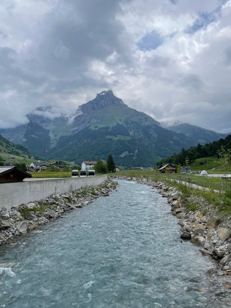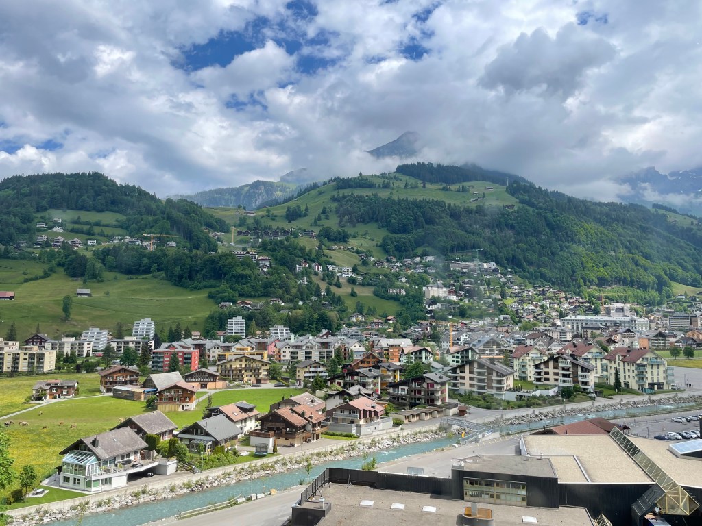 It started sprinkling a bit while in Trubsee, but it was clear when we arrived at the bottom of the mountain. The rides back down the mountain were quite roomy. I enjoyed it a lot more with some room to breathe. We did not get to explore Engelberg besides the walk from the train station because the train arrived at the station the same time we did. I did take a few pictures though.