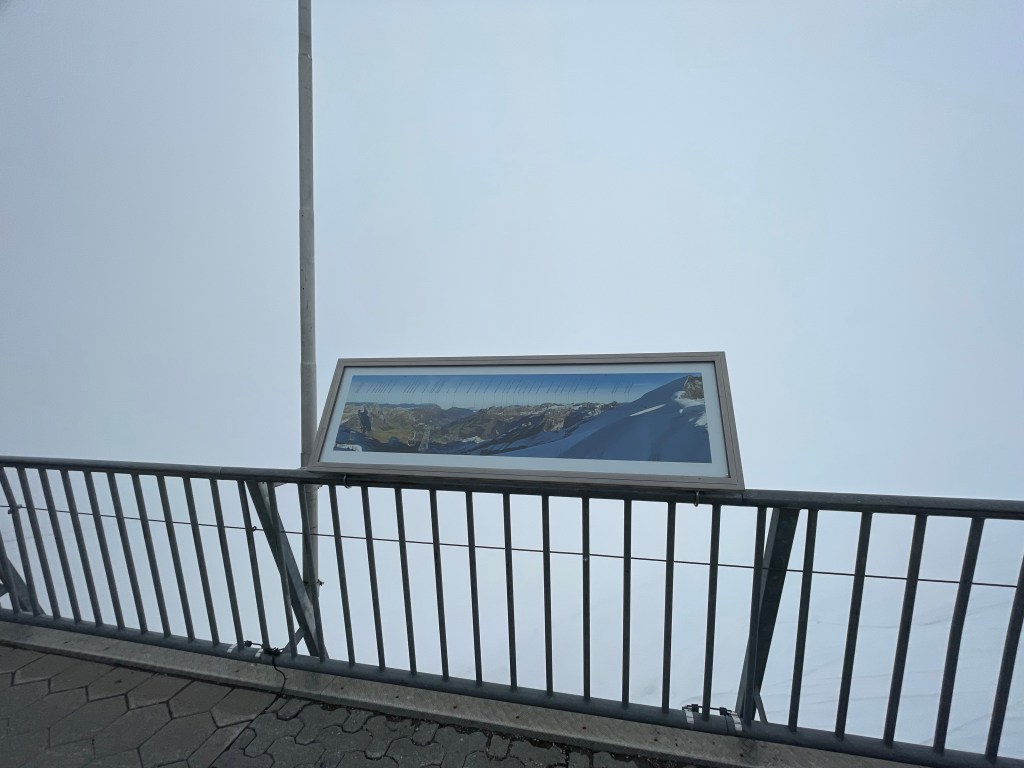 We stopped briefly at the souvenir shop before we left. There was also a place where you could dress in traditional Swiss clothes and take a picture. It seemed rather involved, but the pictures displayed were very well done. I behaved myself and did not buy anything in the shop. Even though the train was not supposed to leave Engelberg until 2:02pm, we decided to head back down a little before 1pm. If there were views to experience, we would have stayed up there much longer.