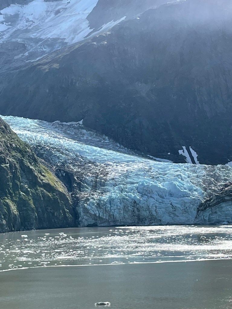 The park rangers have not been out to this glacier because of weather conditions and COVID issues since 2019. We were one of the first boats allowed to view the glacier in three years. We viewed it from our balcony. It was amazing because you could hear the cracking and shifting of the ice. We did not see it calve because the ship turned to the other side when it did so. I heard the ice fall though. It was quite loud.