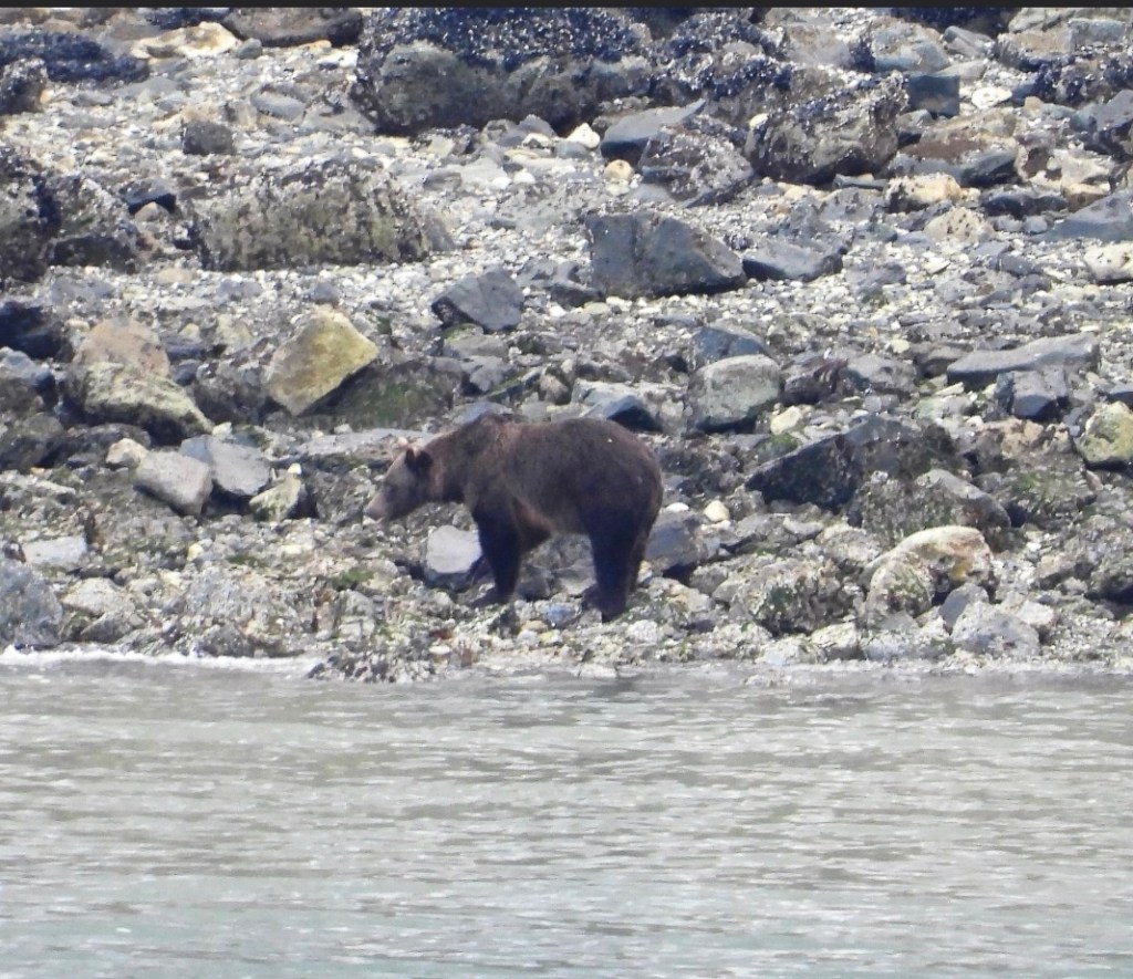 The wildlife was a bonus to the views. My first pictures are at the beginning of our journey toward the glaciers. You can see some smaller glaciers on the way in both on the top and bottom of mountains. We were excited to see two brown bears fishing. They were very far away, but Jef was able to get pictures with his camera and extra zoom.