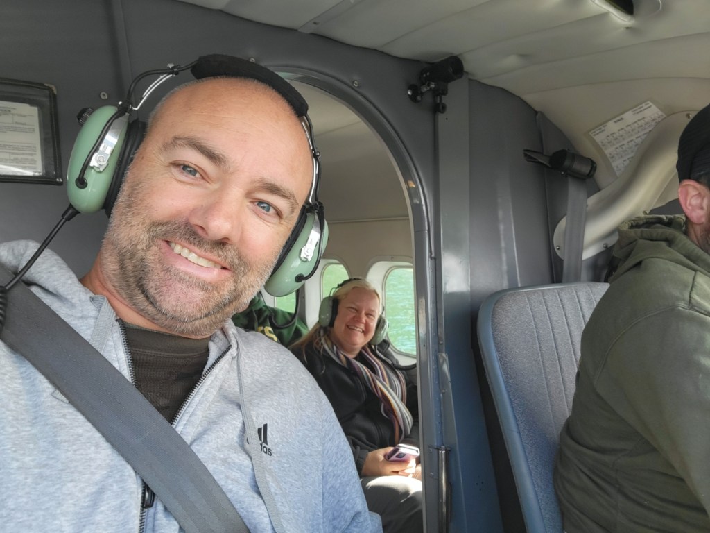 I have never been on a float plane, so I was interested to see if the take off and landing felt different than in a regular plane. We all had headphones, but the pilot said we didn’t have to wear them if we didn’t want to. There was one seat on each side of the plane. We had a cloth to wipe the window once we got to a certain altitude and they fogged up. The headphones had some narration, but it did not last for the whole flight (45 minutes) and the pilot also talked to us a few times. The take off was quite smooth since there were not a lot of waves in the bay.