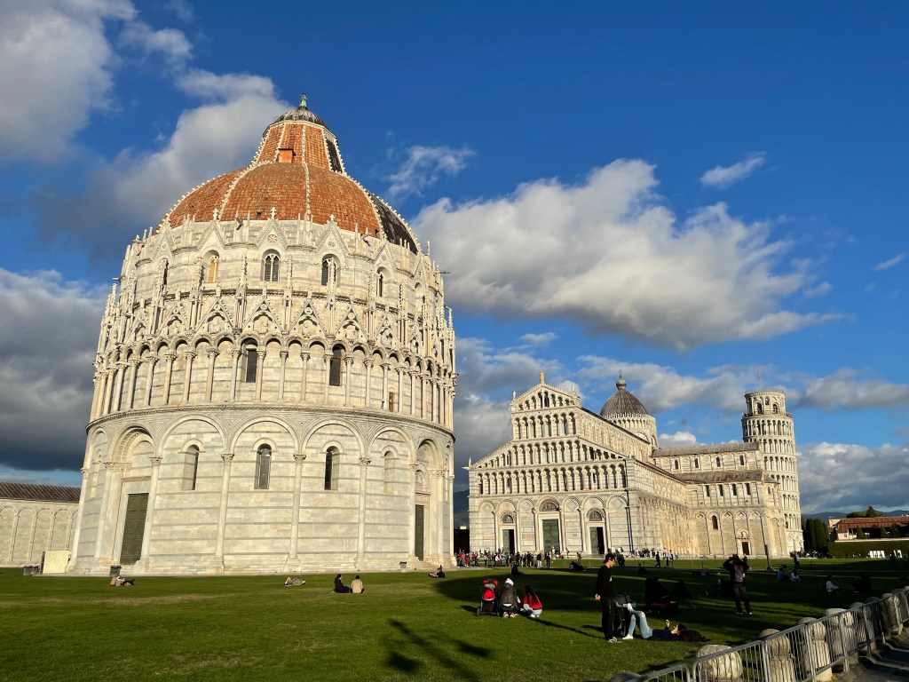 I’m happy that I got to see the Leaning Tower of Pisa. It was really cool up close, but I hated the tourist scene. I was upset that the Baptistery was closed because it’s supposed to be really neat inside and there really was not that much we could do in the short amount of time we had there. The Square of Miracles is nowhere near the city center, so I have no idea what the actual town of Pisa is like. Perhaps because I liked Lucca so much, I felt let down by Pisa. However, I find when I visit somewhere that people talk about a lot or has an iconic structure to view, the visit is not as impressive as the build up. Don’t get me wrong, the Leaning Tower of Pisa is very impressive, but part of me was expecting more from my visit.