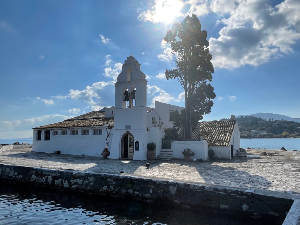 Corfu is not a huge island, but getting around it would have been difficult if we did not buy tickets to the hop on hop off city tour bus. In November the tour bus only follows one of the two routes it does during the regular tourist season, but it was sufficient for us. The first stop we checked out was the Vlacherna monastery.