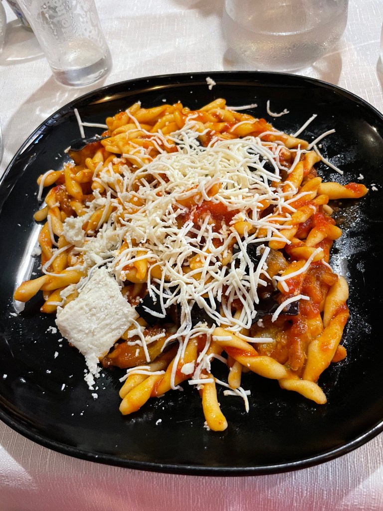 After exploring the Greek Amphitheater, we walked to the end of the Main Street and had lunch outside of the wall. This was the best pasta that I had on the whole trip. It’s pasta with eggplant, tomato sauce, and, as the menu put it, salad cheese.