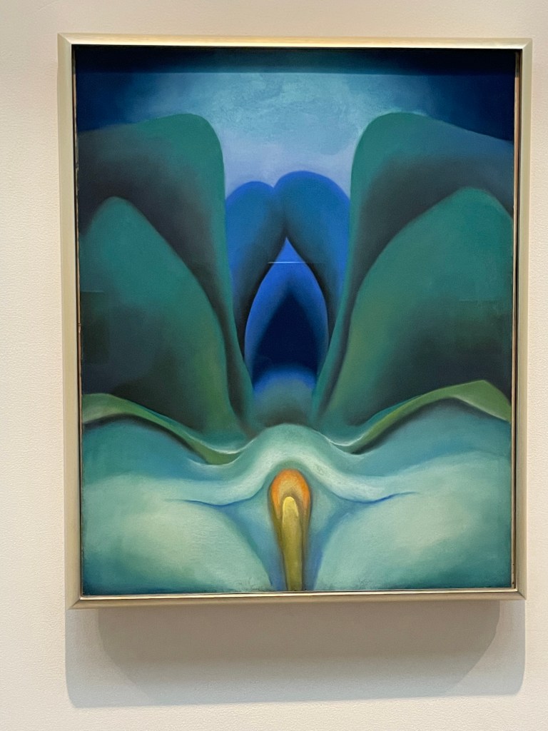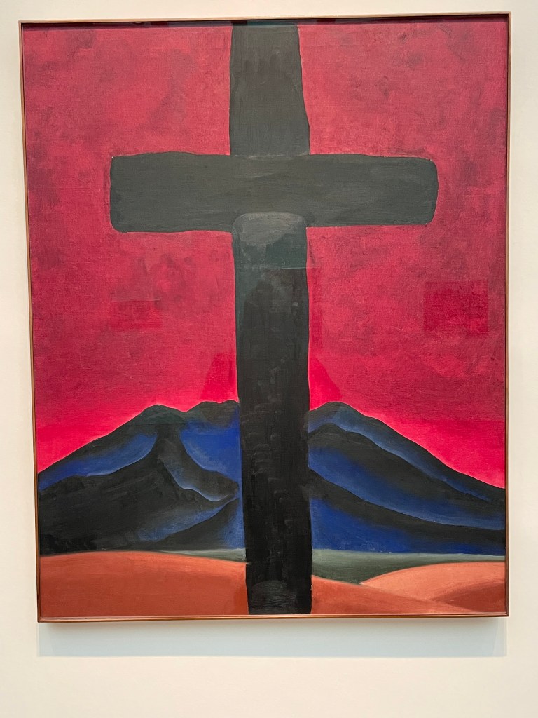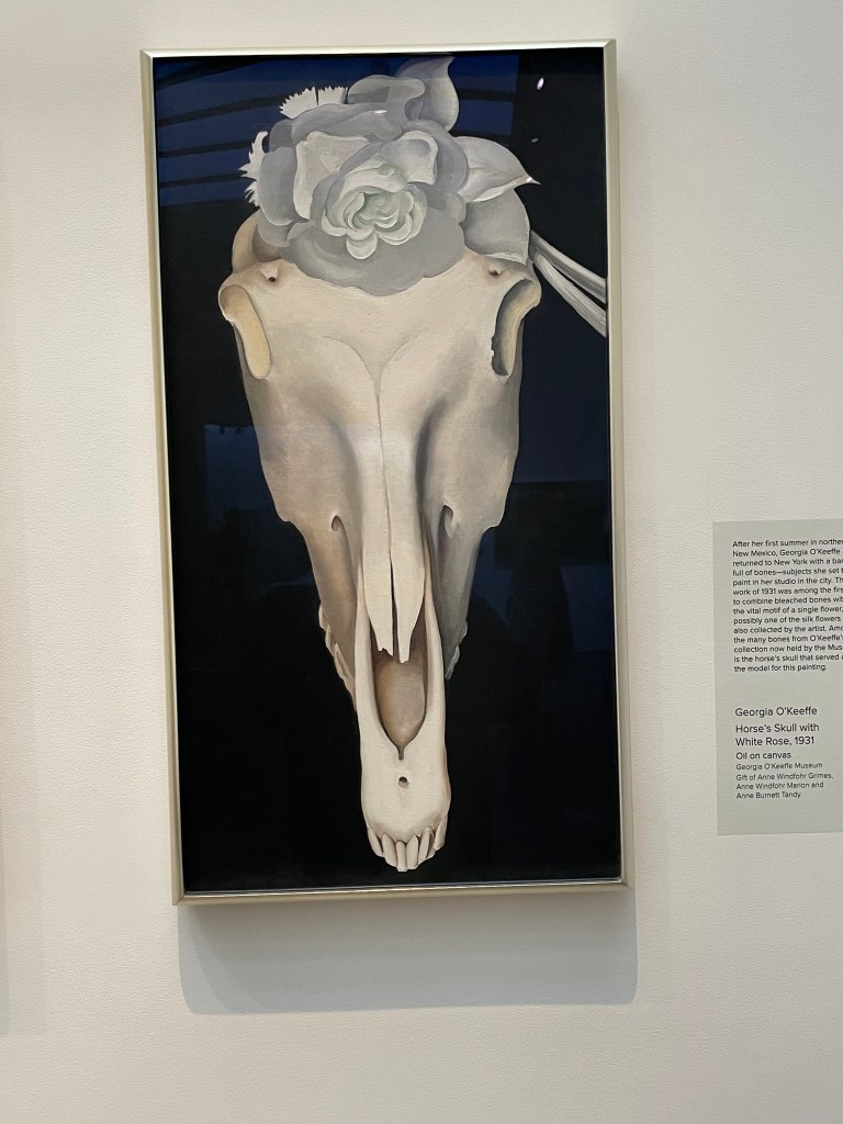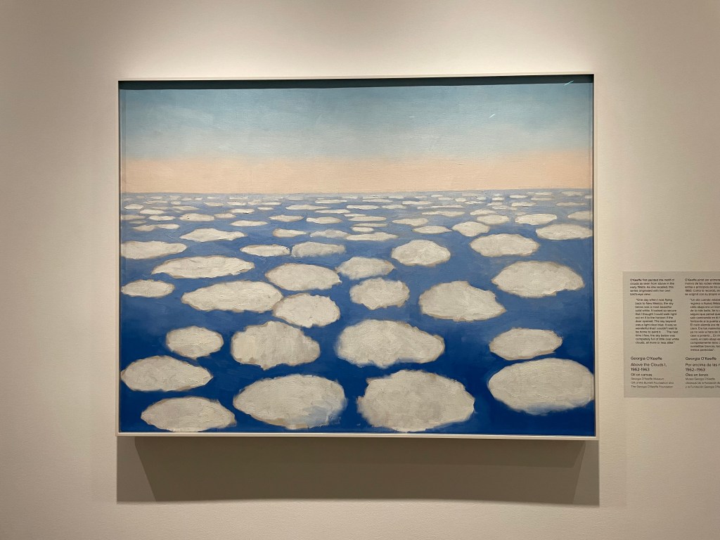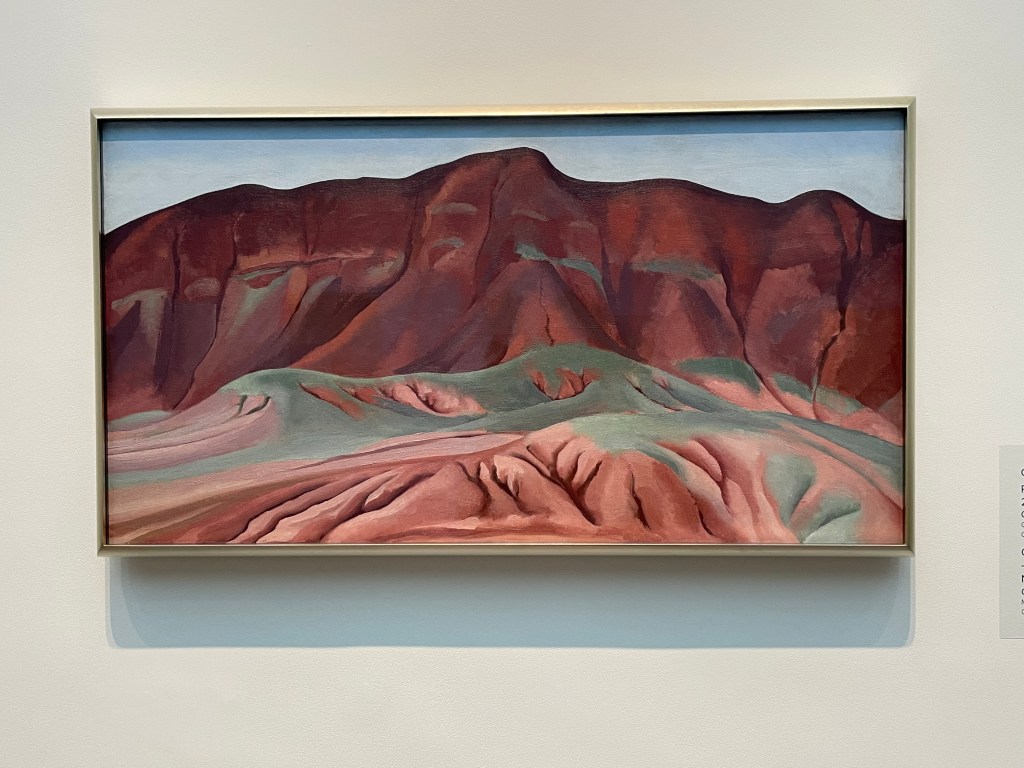 We bought advance tickets at the Georgia O’Keeffe museum. (I wanted to visit her home, but it is closed in the winter.) The museum was surprisingly busy for a weekday morning. It was smaller than I expected, but it had a good representation of the different stages of her painting. I fell in love with her painting when I attended one of her exhibitions at the National Gallery in Washington D.C. shortly after she passed away. Her paintings of the clouds took up an entire wall and I connected with her experience of being on a plane. Here are a few of my favorites that were displayed: