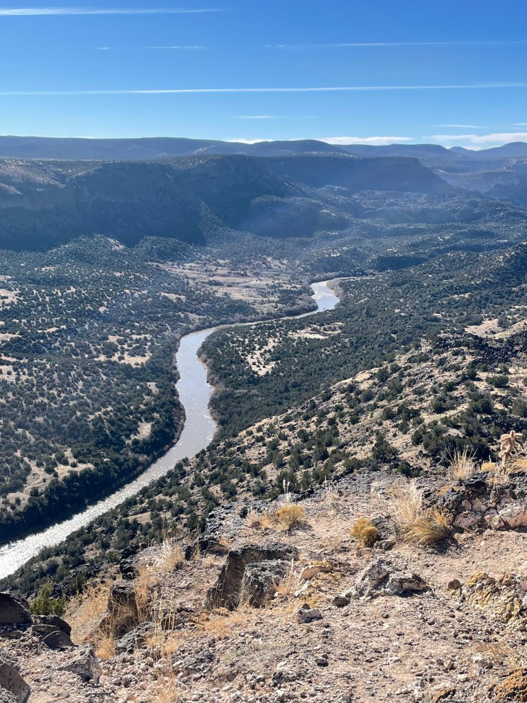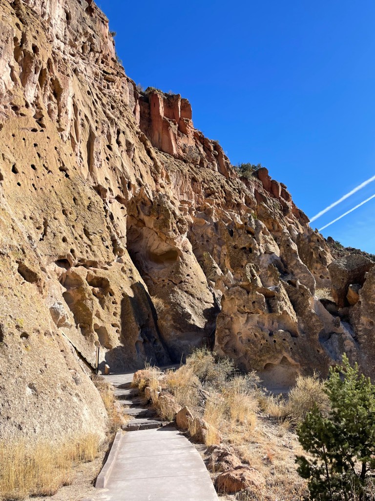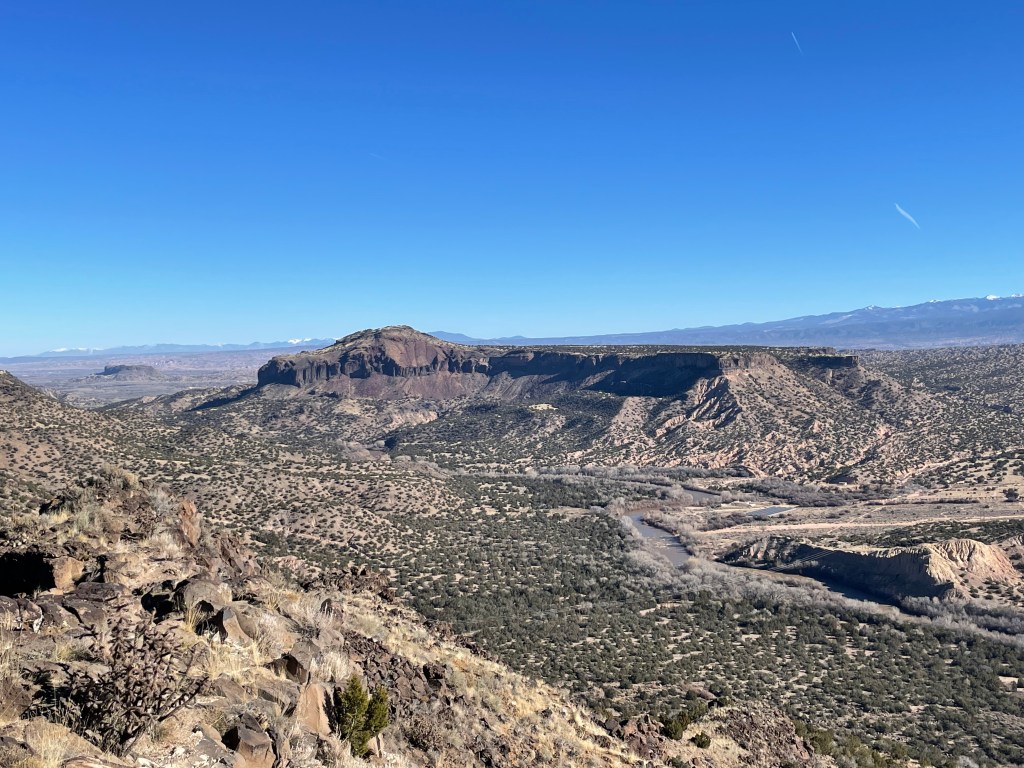We stayed in an Air BnB that was attached to a house, but had a separate entrance. It was off a dirt road right outside of Santa Fe. The next day we drove to Bandelier National Monument. On the way, we stopped at a scenic overlook to take a few pictures of the landscape.