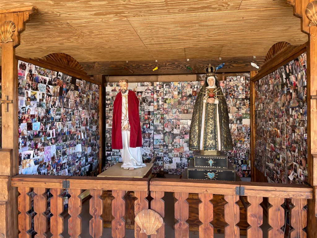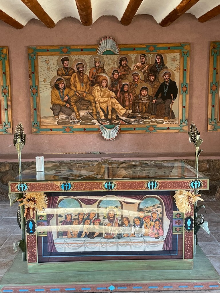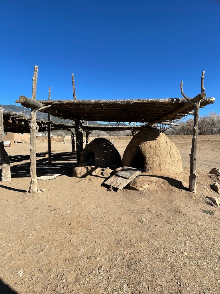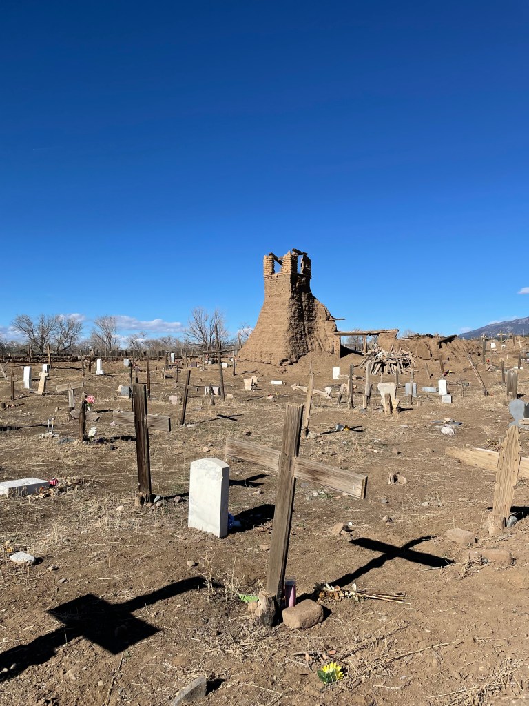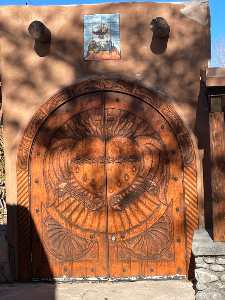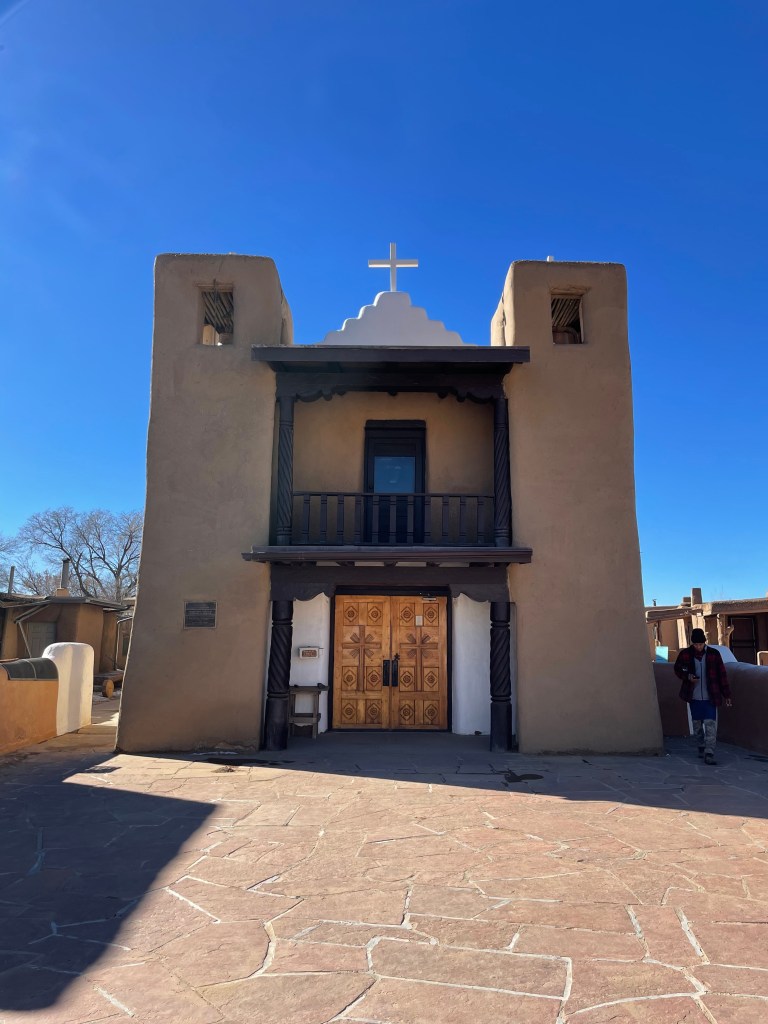 On our way to Taos Pueblo, we stopped at El Santuario de Chimayo. There was no one there. We wandered around the various capillas and went inside the lovely church. They had the coolest statue of Jesus that I have ever seen. It reminded me of Botero’s style, but without the pot belly. I could not take a picture because there were none allowed in the church.