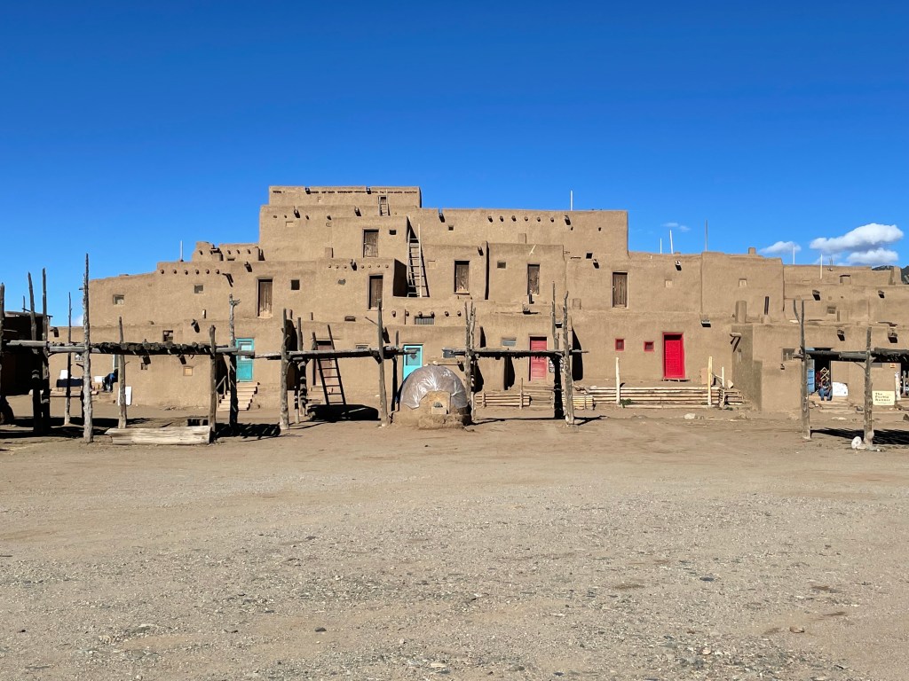 There are only about ten families that live in the Taos Pueblo on a daily basis. Most people don’t want to live there year round because there is no electricity and no running water. There are many people in the tribe that come and live there for a few months at a time or they come to visit when they have important ceremonies. The tour guide said there were about 3,000 members. You could walk around the town on your own, but there were areas that were closed off to tourists. We asked her why and she said they were either the areas with kivas or where the families were currently living. We also asked her what she thought about sports teams changing their names to honor Native Americans. She said that her people don’t care about that stuff. It’s just another example of people making a big deal in the name of people who have no interest.