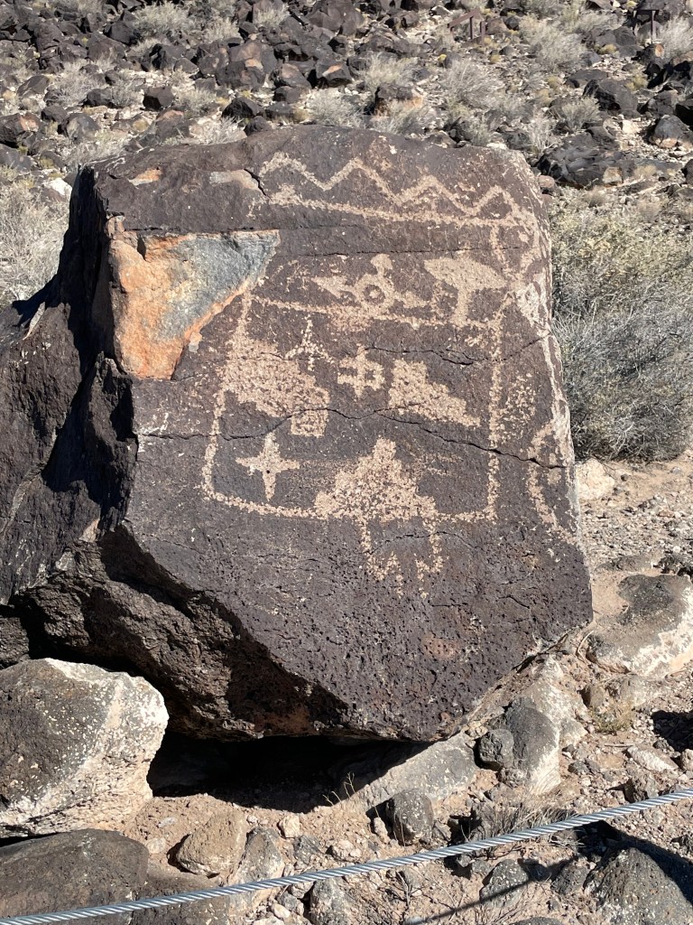 We planned a trip to New Mexico because it was the only state that I have not visited. I always thought it would be a neat place to visit and I was right. We arrived in Albuquerque on a very windy day. I saw my first tumbleweed rolling down the road as we drove our rental car out of the airport parking lot. We stopped at the Petroglyph National Monument to check out the petroglyphs. It was so windy that we didn’t make it up the entire hill, but we saw some cool drawings nonetheless.