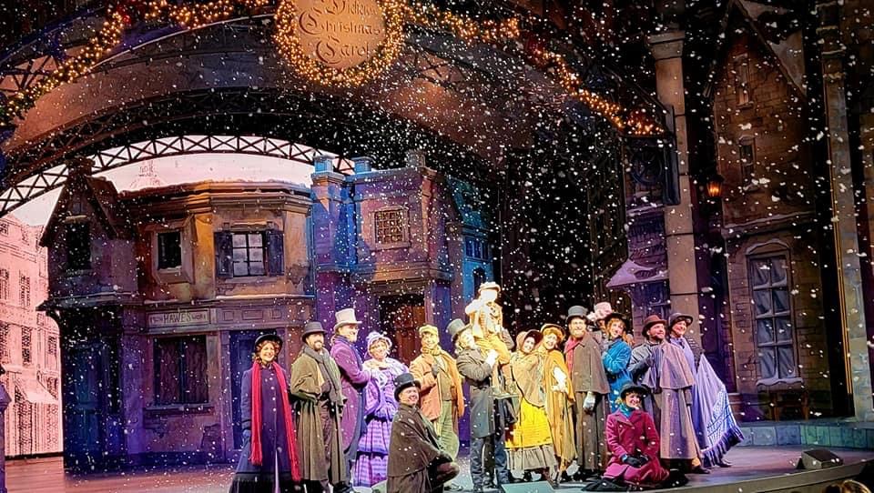 The line to get to Silver Dollar City started miles ahead of the entrance. We couldn’t believe the number of people trying to enter the park. Parking there is free, but you can pay for preferred. We parked in.a free spot and they had buses and trolleys that would take you to the entrance. The line for the bus was so long that we decided to walk. It only took us 10 minutes and we definitely got there before the bus. The line to get in was not terrible. We beelined it to see the show, A Christmas Carol, which was halfway through the park. It seemed rather quiet in that sections, but the theater was almost full when we got our seats. The show was amazing! They had all kinds of neat props, trap doors, covering smoke, and amazing costumes. It was the musical version and the actors were excellent. Even my husband really enjoyed it and he doesn’t like musicals.