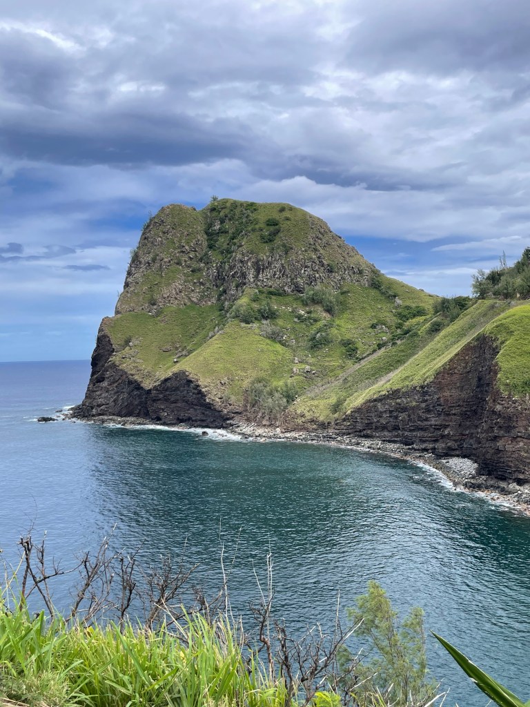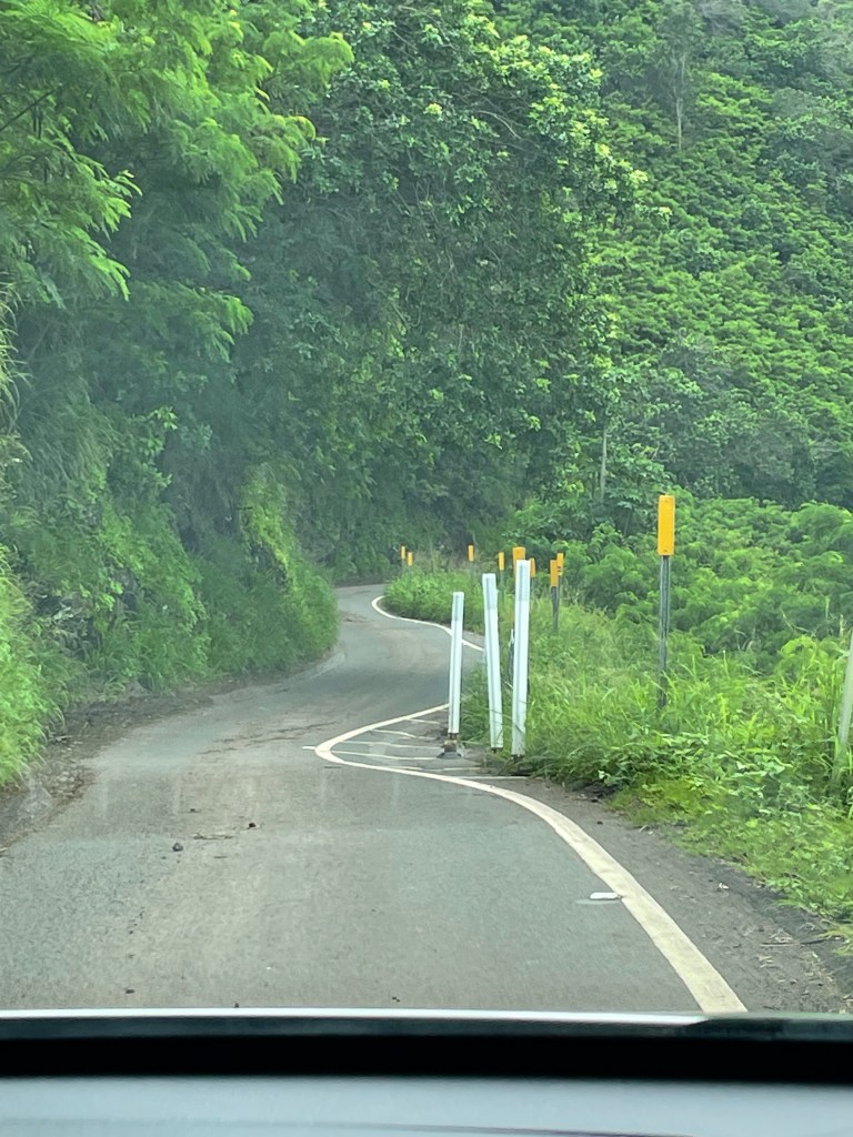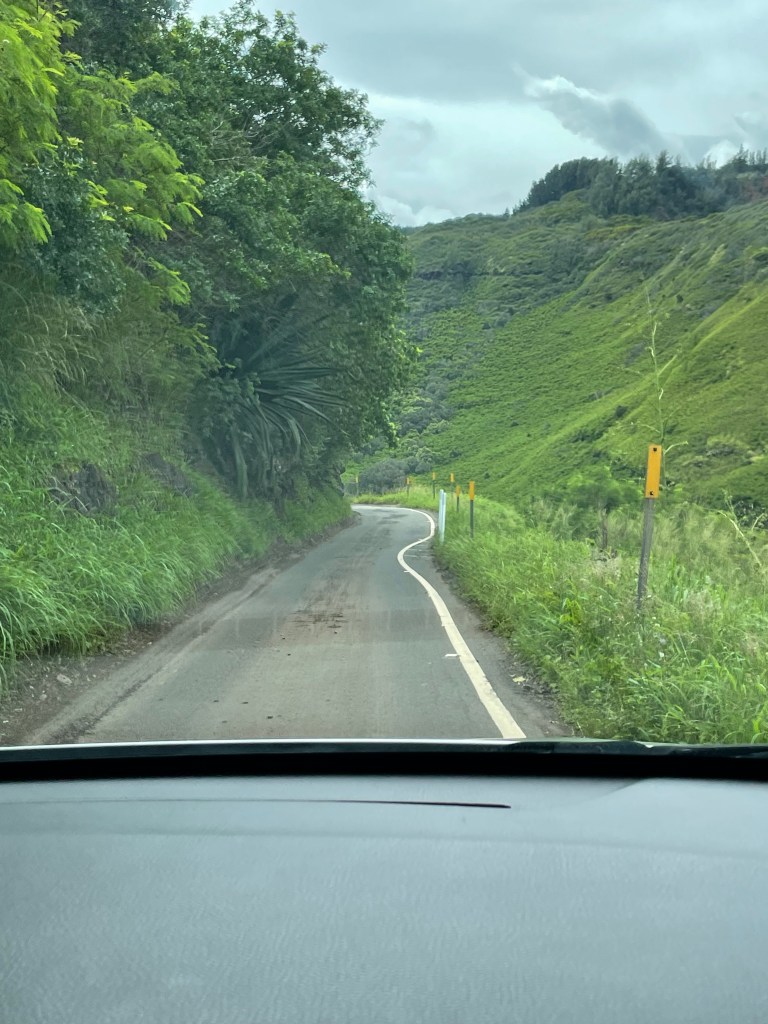 We flew to Maui this morning on Hawaiian Airlines. The flight was only $39 and it took less than an hour. Our hotel was not going to be ready until 4, so my husband planned for us to take this road around a section of the island. I didn’t find out until this evening that we drove the very dangerous Kahekili Highway. Even though it is a two way highway, as you can see from the picture, two cars cannot fit in many sections. We actually had to back down the road in several areas because there was no where on the side to pull over. At one point a cement mixer had to get by us and four cars had to back up. It was stressful. There were a ton of blind corners in which there was only enough room for one car. At one point, a guy stopped next to us and asked, “Is this a two way road?” We assured him that it was. When we got to our hotel, I looked it up and there are all these warnings. Apparently some car rental companies will not allow you to drive on this highway. They suggest that you only drive in the daylight on sunny days because if it is raining there can be rock and mudslides. We did see rocks in the road. Although it was stressful, it was also very beautiful.
