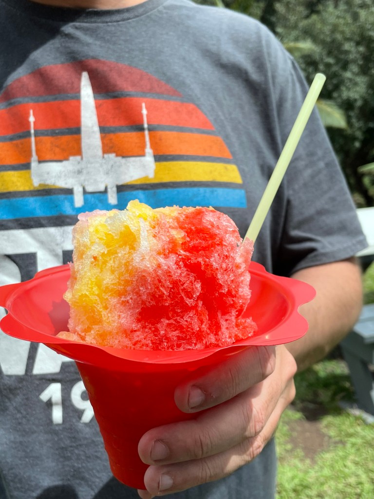 We stopped at this gallery. It had some beautiful pieces of pottery and jewelry and glass work. I’m not sure that I want to drive up there again, but I am still thinking about some of the art we saw. Our second stop was for a shaved ice at Lorraine Shaved Ice. The ice was so soft that it was like eating flavored snow.