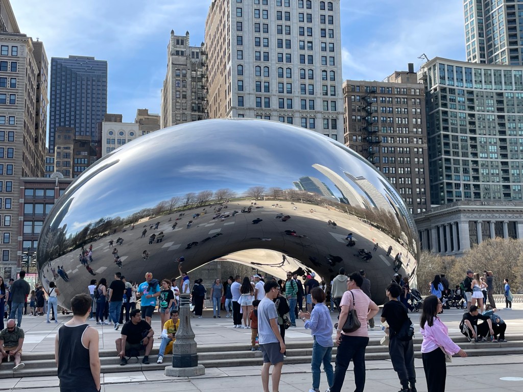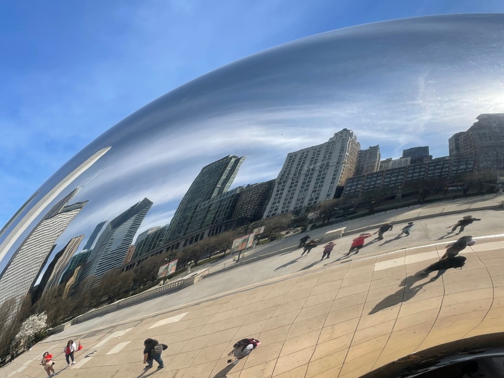 We started to walk over to Buckingham Fountain, but we could see that it was not on and therefore not interesting. We decided to check out the bean, which is actually called Cloud Gate, in Millennium Park. I am usually not impressed with iconic landmarks, but I really liked the bean. It was neat.