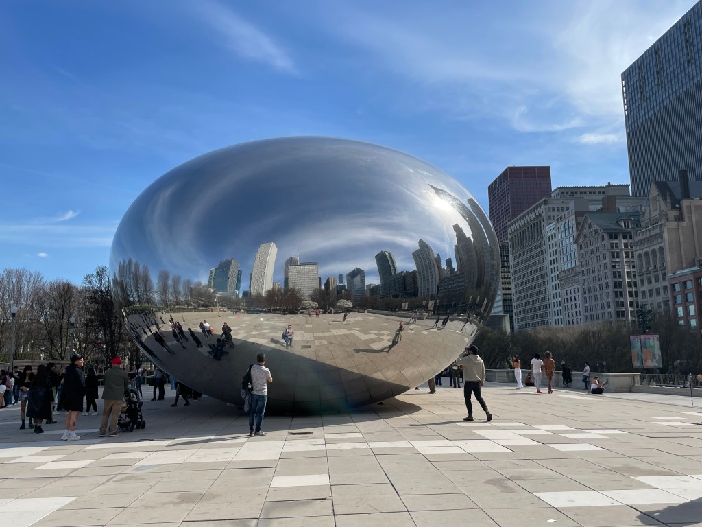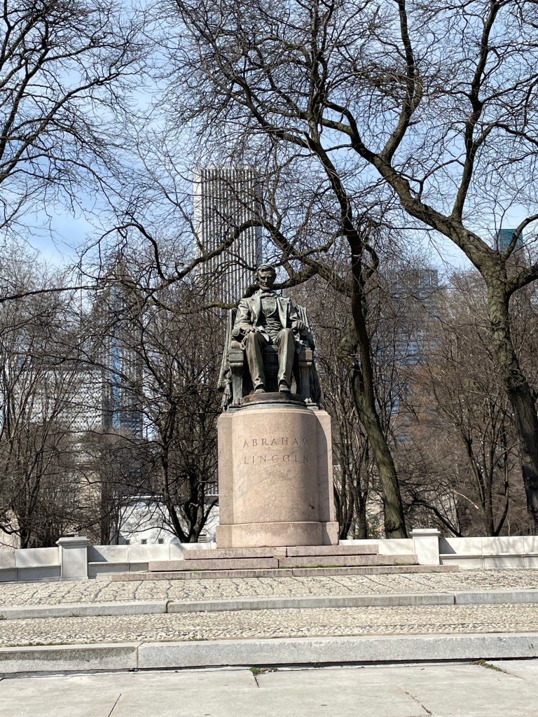 When we were walking through the parks. I took a picture of the Abraham Lincoln statue and the cool concert venue near the bean.