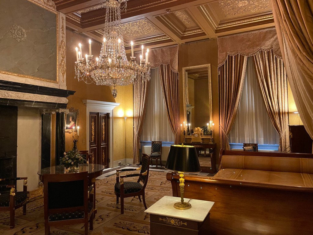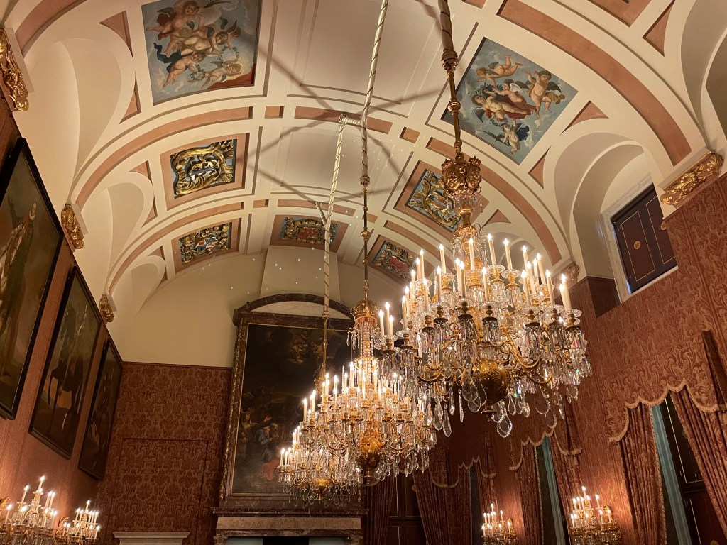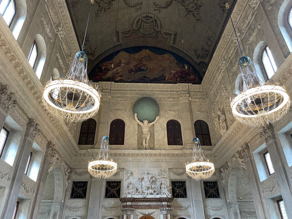 The main hall is carved in marble. Each corner has different Greek Gods. My favorite carving was the one of Jupiter. I also found Atlas holding up the Earth to be quite impressive. Every room you enter has a main message on the audio tour, but some have extra ones about certain objects, paintings, or the time period. Each room had amazing furniture from the French King Louis Bonaparte, who turned the building from a town hall into a palace.