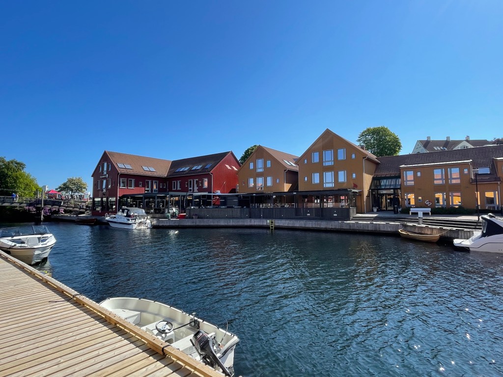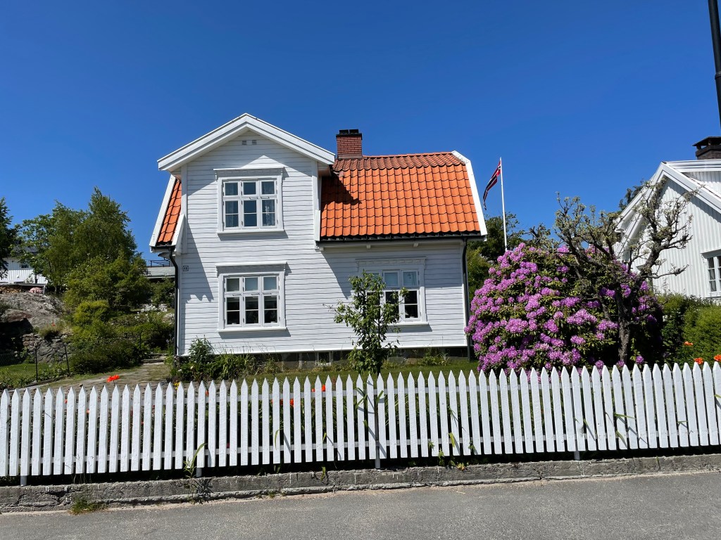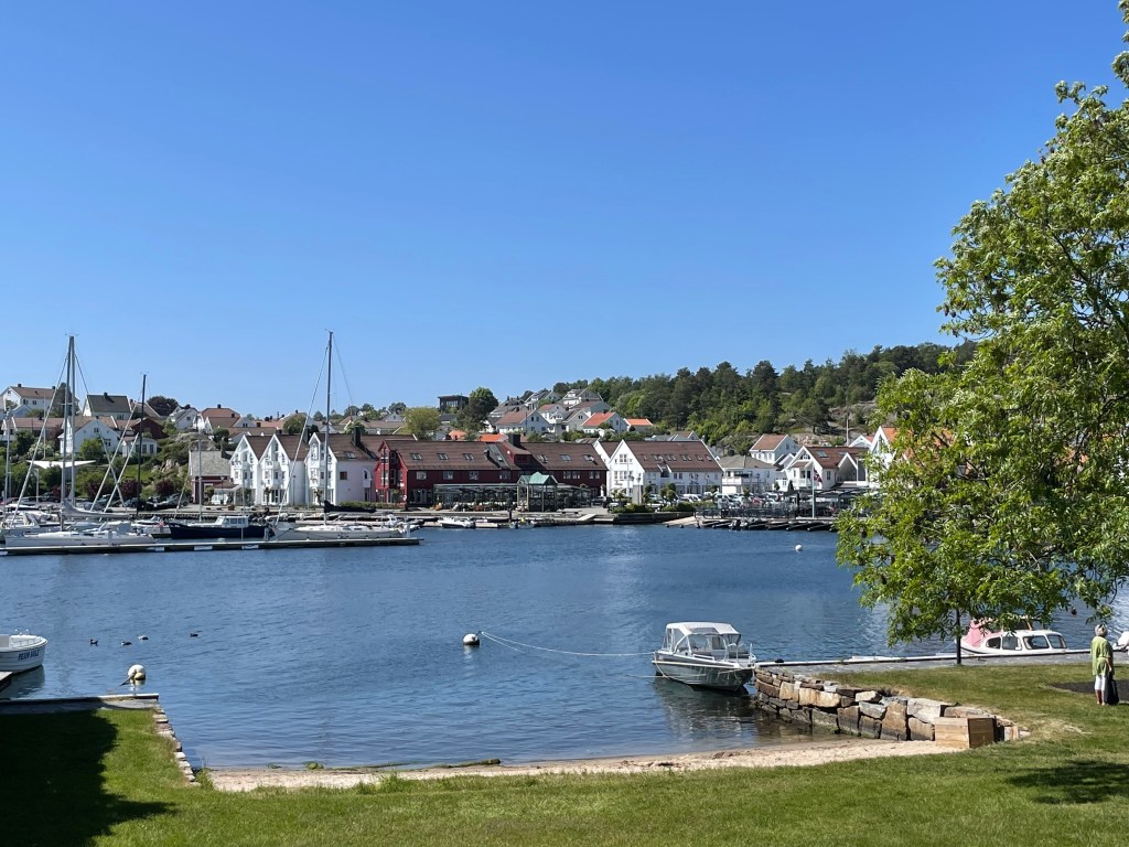 My husband thought it would be fun to check out a little town about 20-30 minutes by bus outside of Kristiansand. It was called Lillisand. The bus ride was nice because we got to see some of Norway that we would not typically see. At our stop, we had to walk down into town. It took about 15 minutes. The houses were all these beautiful white houses with blooming gardens. I stopped to smell the lilacs quite a few times. The town is right on the water. We walked around taking pictures and I got a gelato. They had some kind of soccer tournament happening on one end of the town and everyone was headed that way. We could hear the announcements, whistles, and music from our bench on the water. It was a lovely experience.