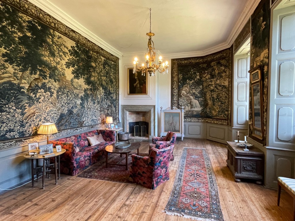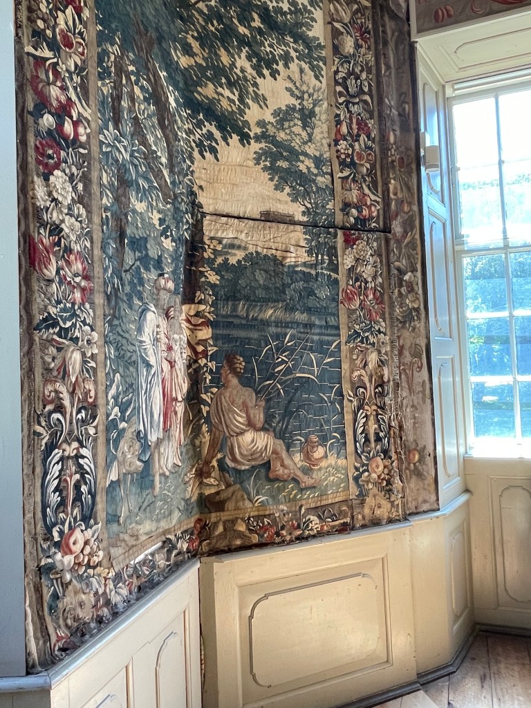 She described paintings of famous people and members of the family, but my pictures are about the furnishings and wall hangings. You can see this one tapestry didn’t fit the wall and the cut it so they could use the door behind it! Scandalous!
