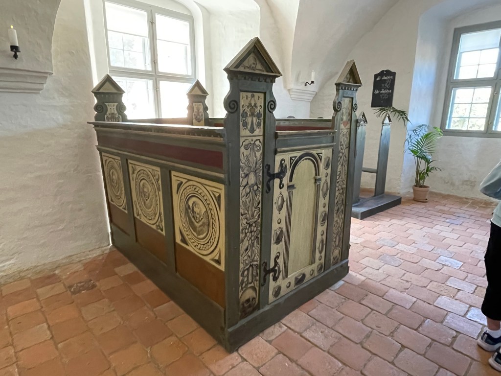 Gammel Estrup has been in the possession of the Scheel family for 600 years. It was converted into a museum in 1930 because in 1926 a new inheritance law made it too difficult for the family to retain ownership. Each section of the house pertained to different centuries and it was fascinating to see the differences in both decor and use of the rooms.