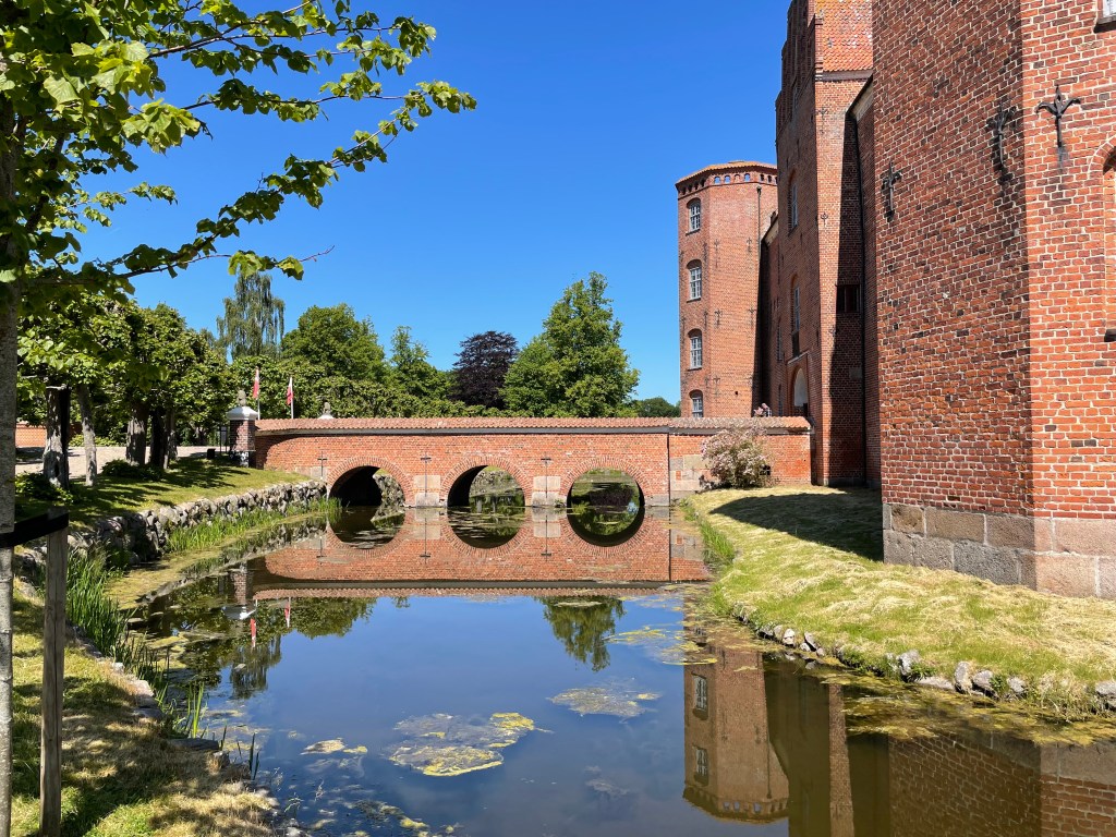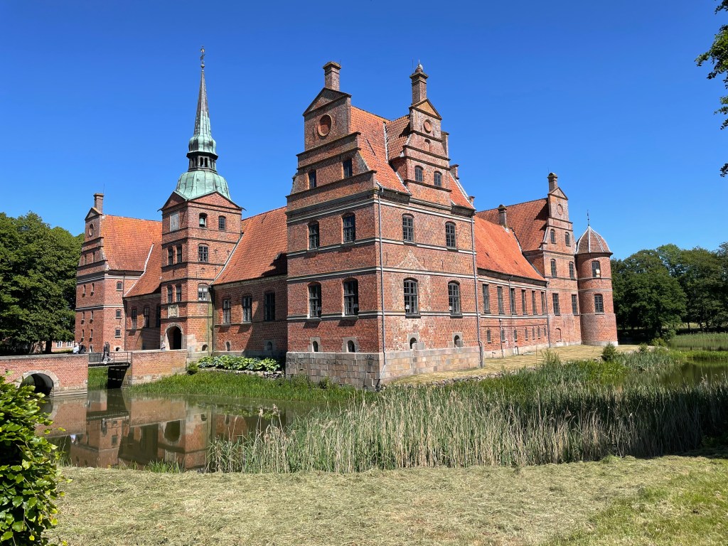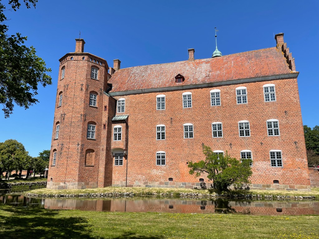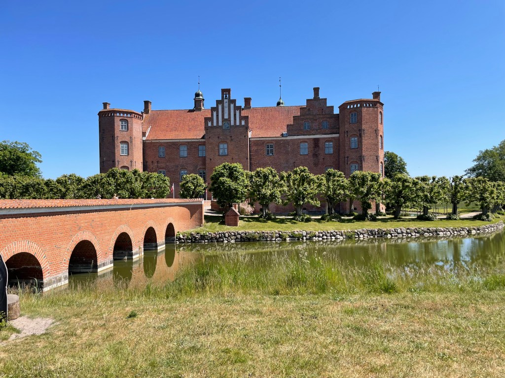 Today we purchased an excursion from the cruise ship to Gammel Estrup or The Green Museum and Rosenholm Castle. We left the port a little after 11 and arrived at the Green Museum (which is the house and the whole area) a little before noon. Gammel Estrup is a manor house that you can tour and it also has a national museum with exhibitions on hunting, forests, agriculture and food. You can also walk around the grounds and tour the gardens, machines, the old smithy, apiary, farm workers’ house, greenhouse, fields and stables, apple orchard, farm animals, orangeries, ice house, carp ponds, and the forester’s cottage.