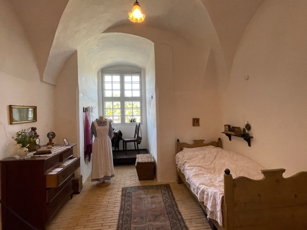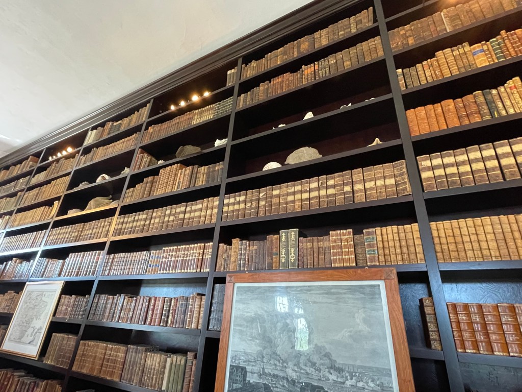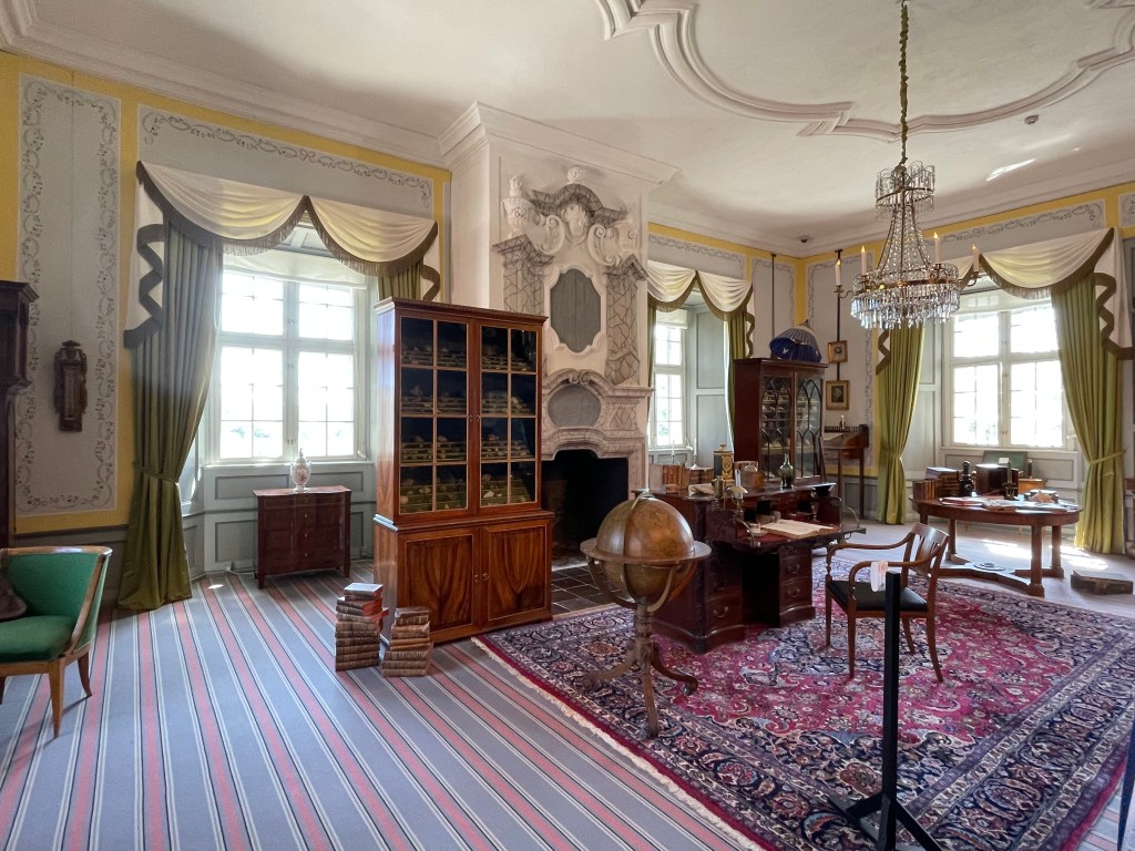 The third floor is from the 19th century. The Count’s study was really neat. He had an extensive shell collection and devices for measurement. He also had an entire wall filled with books.