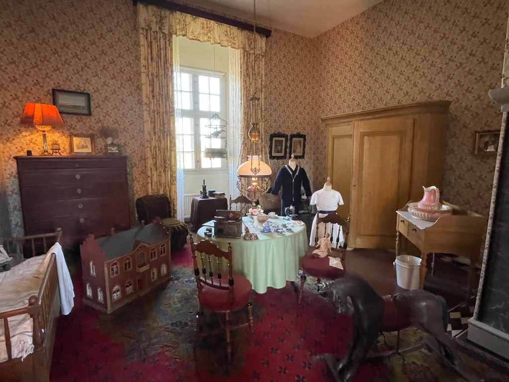 The last rooms were the most modern of the manor house. There is a drawing room with family pictures and room for everyone to hang out together. The parents’ bedroom is one room together and it is right next to the children’s bedroom.