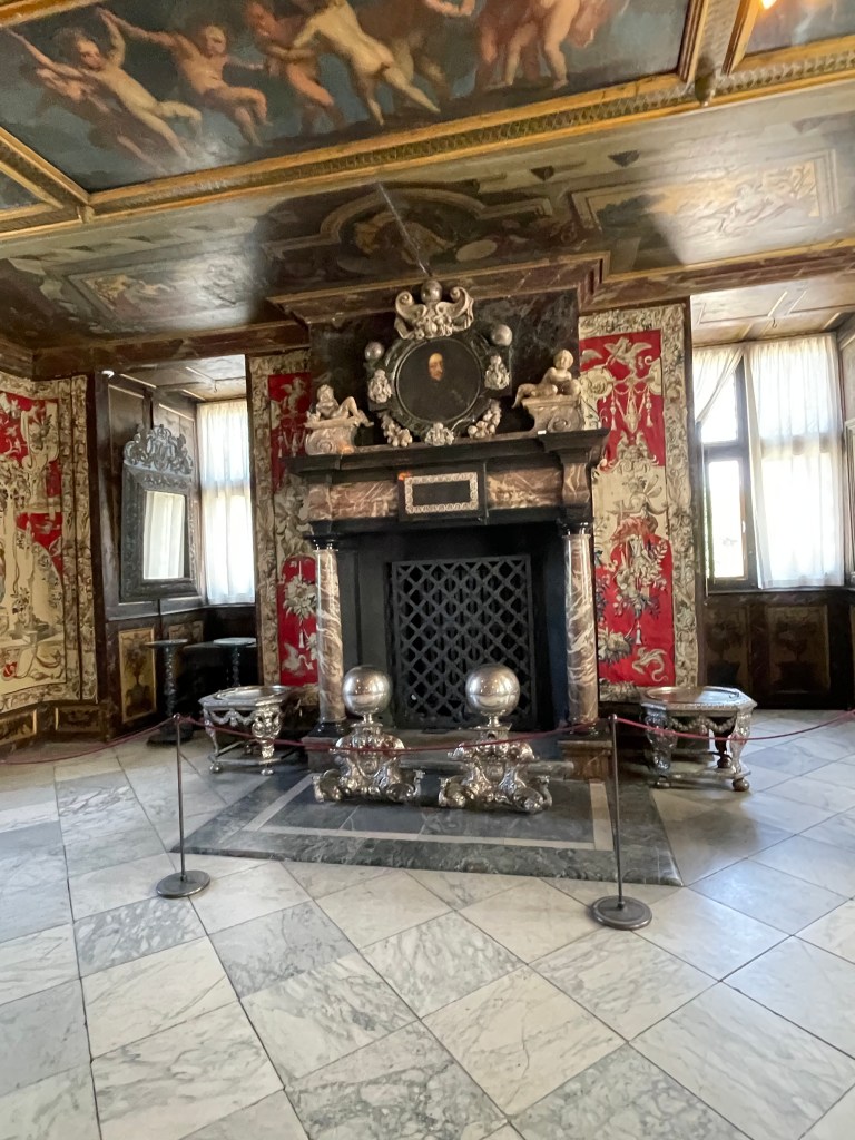 I tried to take pictures of the most interesting things in each room. The first room was Christian IV’s winter room. I loved how the paintings were like wall paper in this room. Next door was his writing room. His desk was amazing.