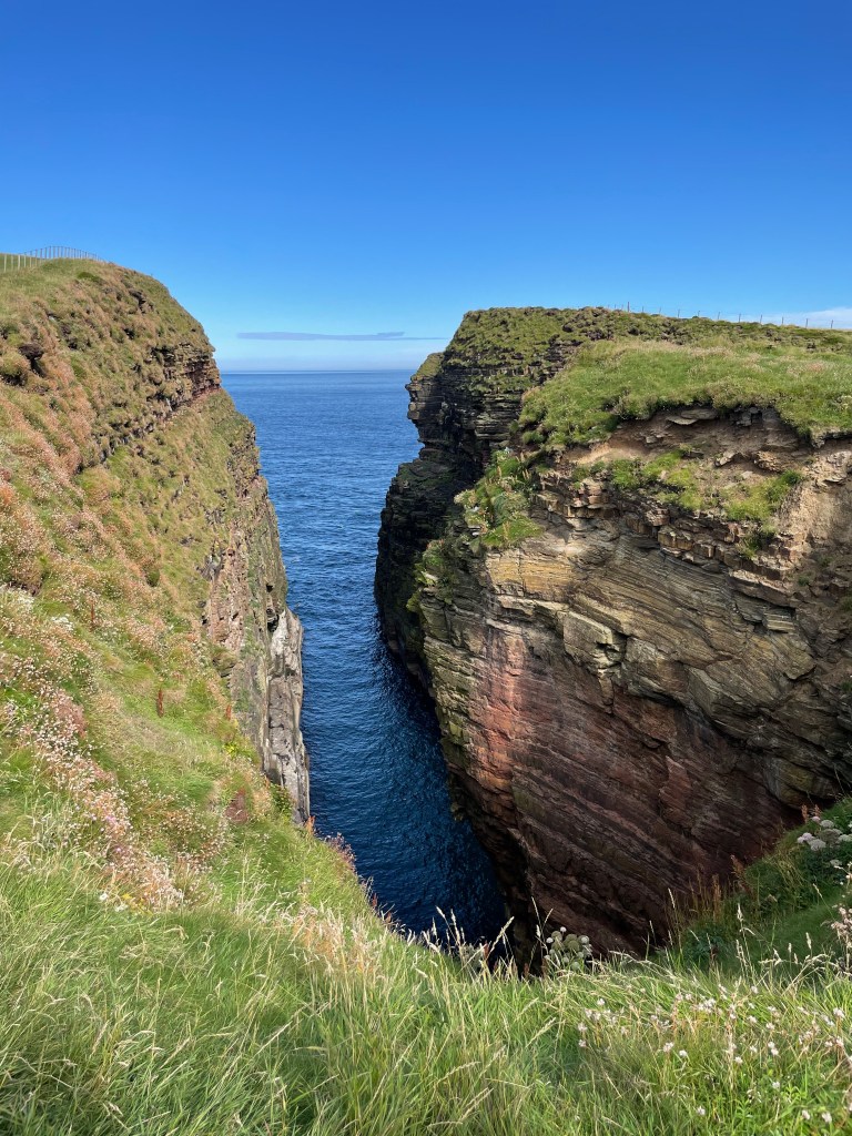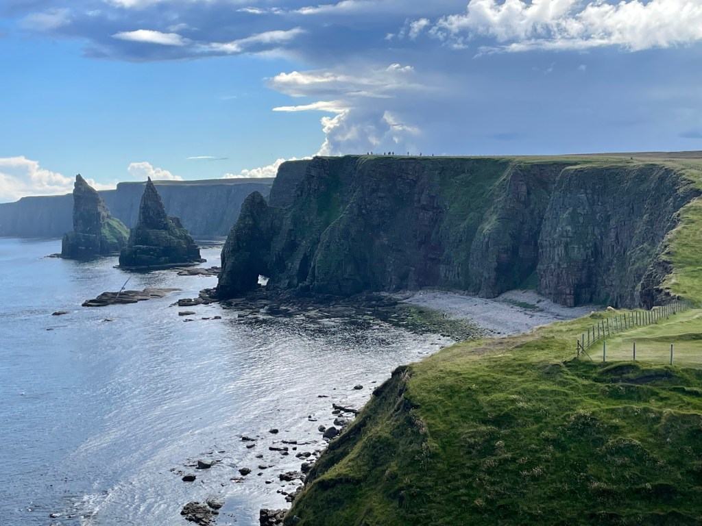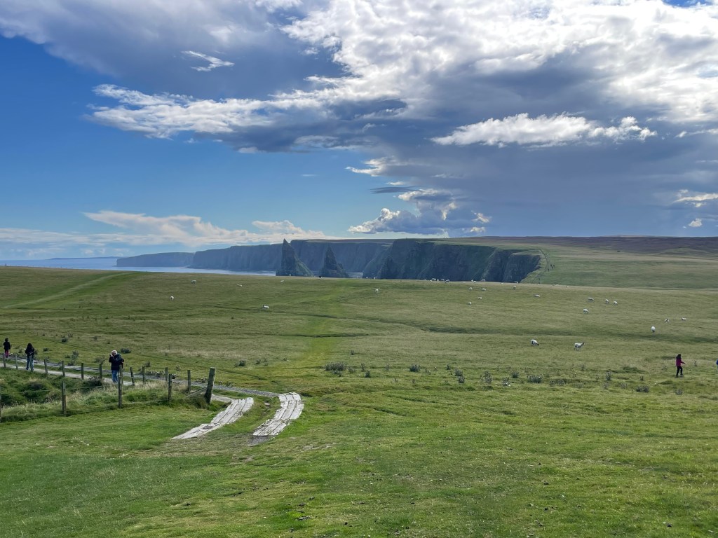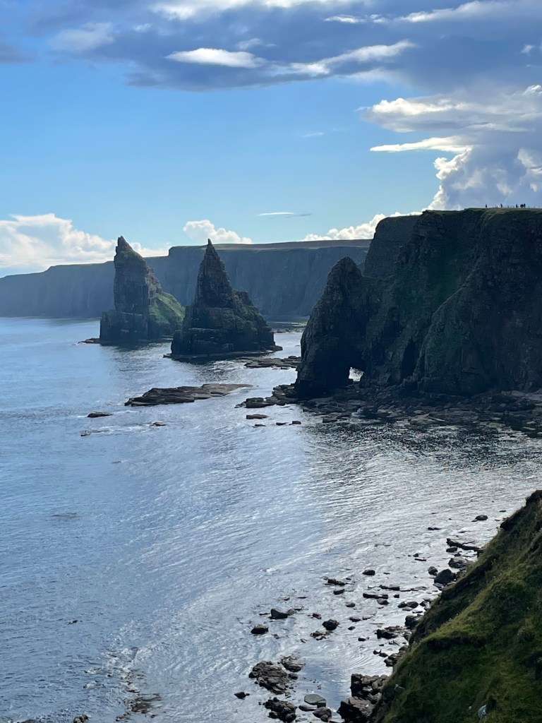 Our last stop was in John o’Groats at the Duncansby Head Lighthouse and Duncansby Stacks. We parked near the lighthouse and then walked through a field filled with sheep to get a good view and picture of the stacks. There were people that walked all the way to the beach (descending with a rope ladder). The sheep want nothing to do with people, so don’t try to be friendly, they will run. You also need to be mindful of where you are stepping since the sheep live there and poop all over. It was a beautiful walk nonetheless.
