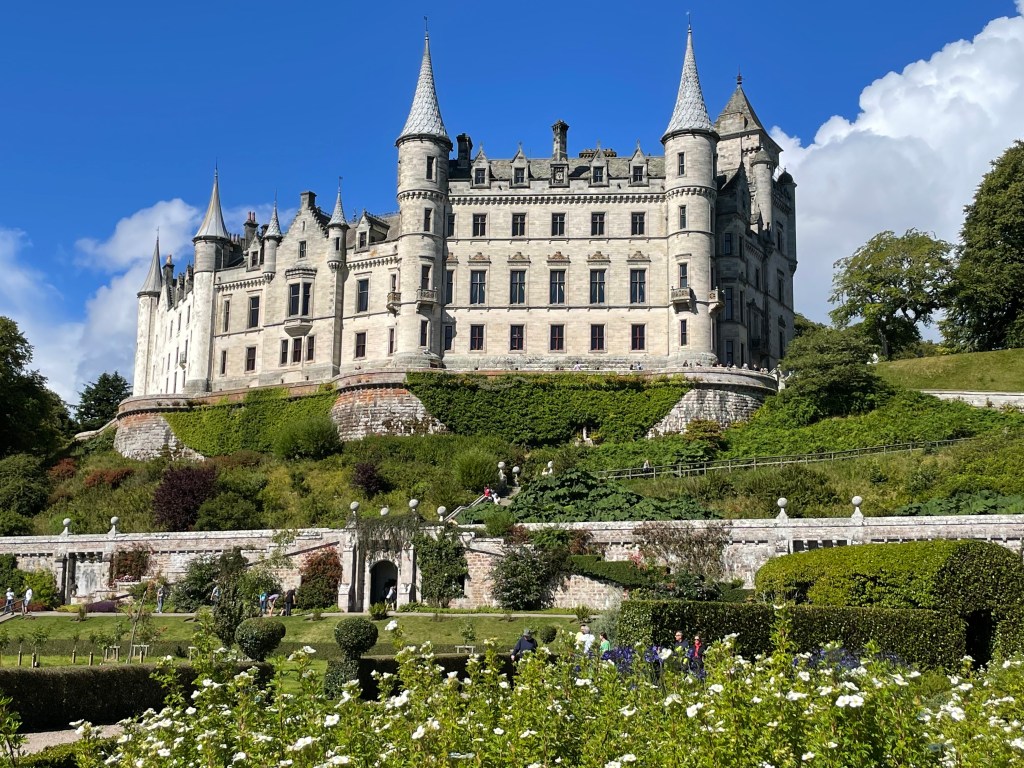 We then climbed back up the castle and took pictures of the gardens and entered the castle itself. Dun means hill or fort, so the castle is Robin’s hill. It was built in 1235 (possibly started as a fort) by the Earldom of Southerland. It is one of the seven ancient earldoms Scotland and they were one of the most powerful families in Great Britain. The actual castle was not built until the 1400s, but exchanged hands many times and was not updated until the 1700s and again in the 1800s, which is what you see today from the outside. The inside had to be remodeled in the 1900s after a fire destroyed most of it. It was a boarding school for seven years in the 1960s, but reverted back to a family home. Even though it is open to the public, there are private rooms still used by family members. It is one of the oldest inhabited houses in Scotland.